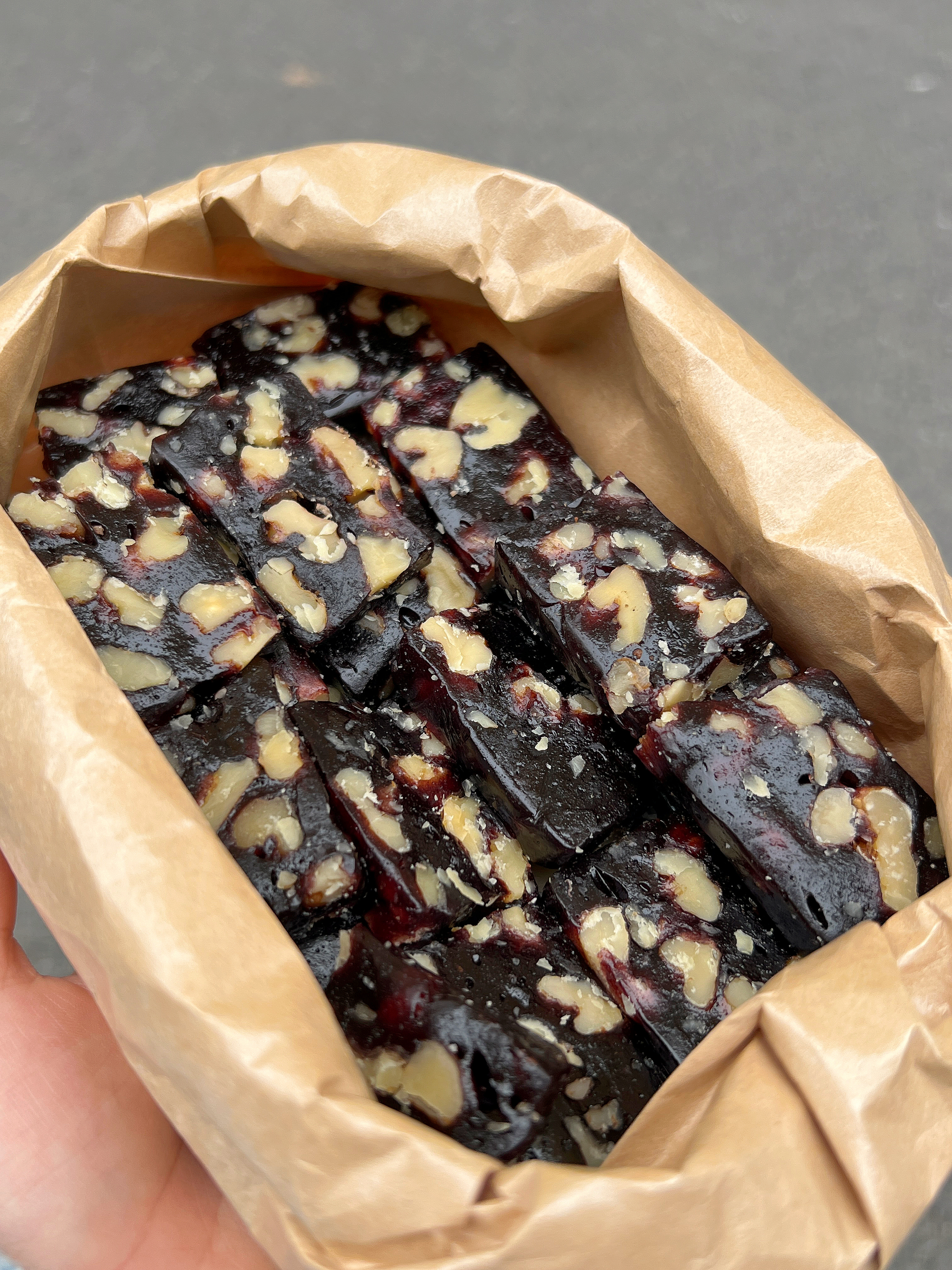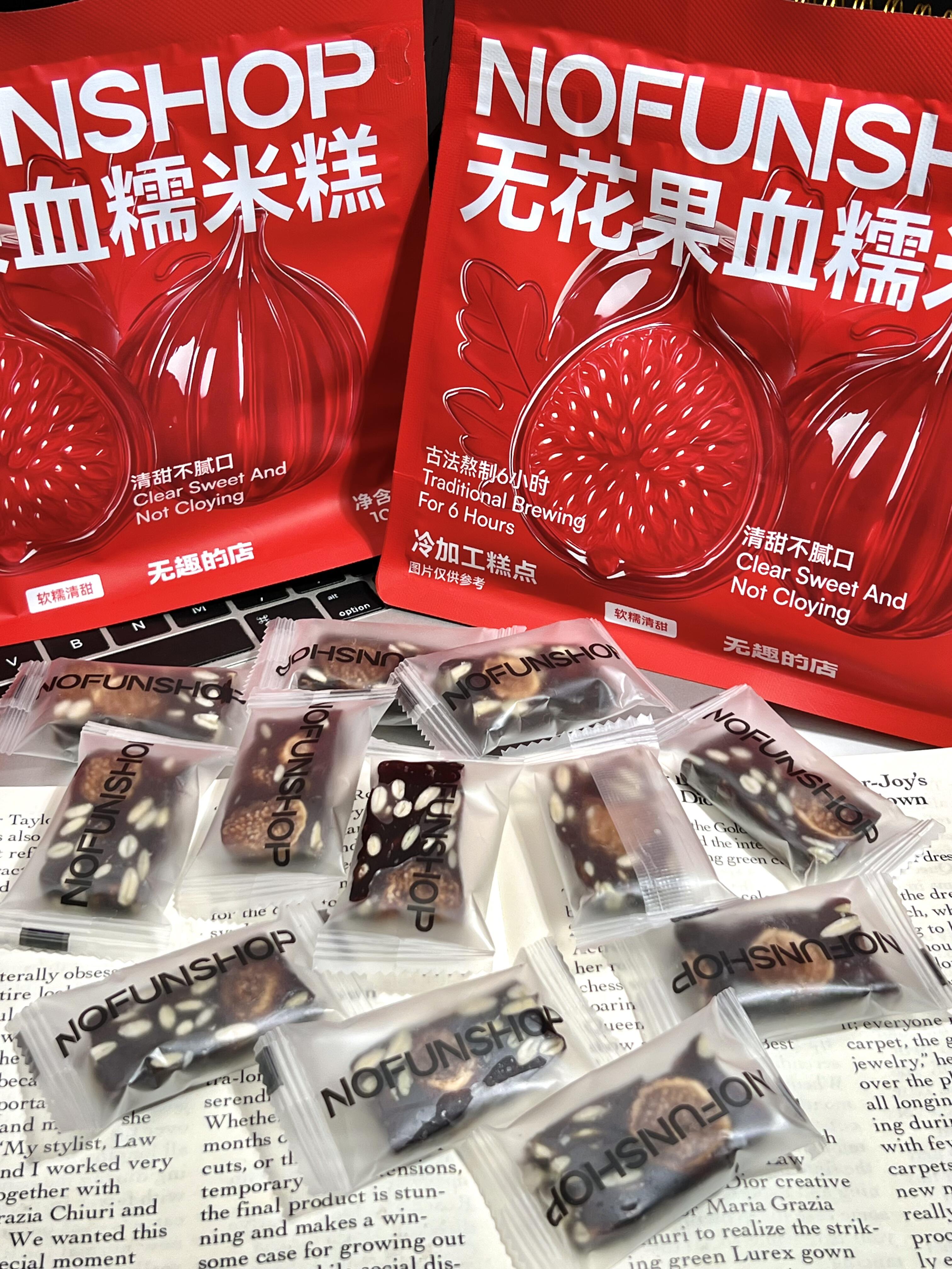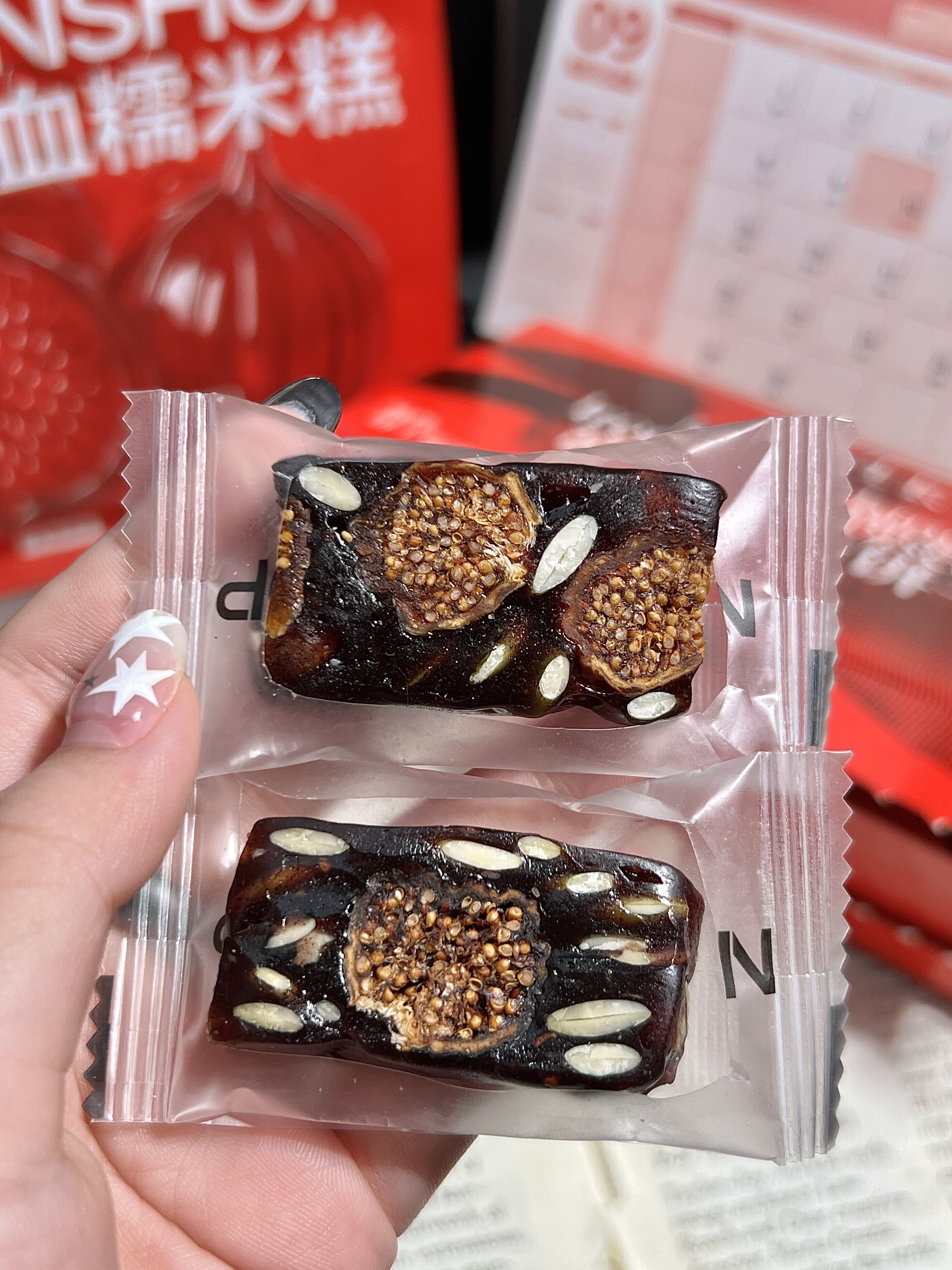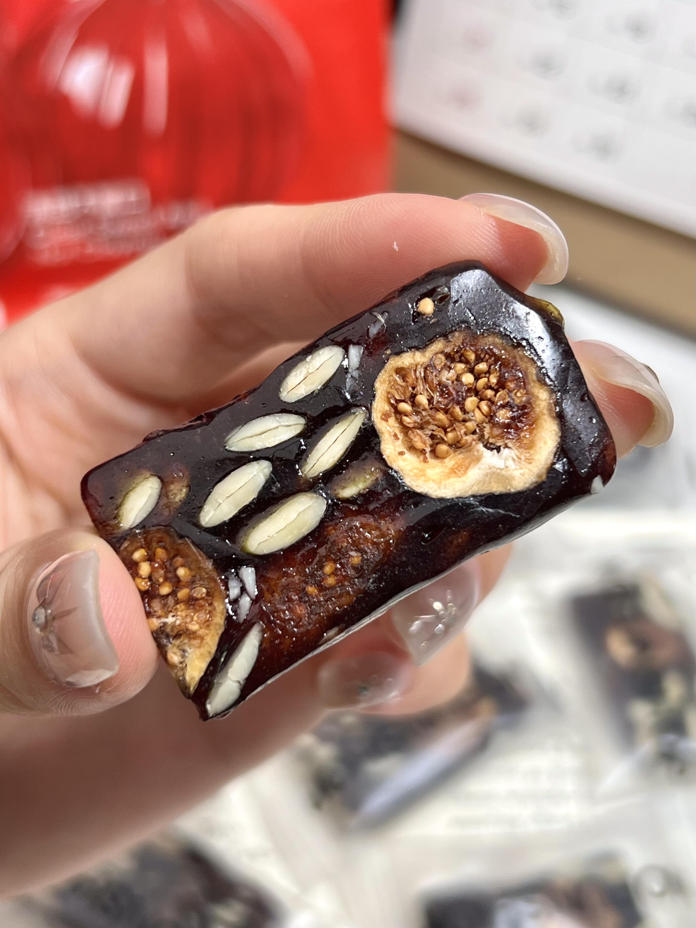 ✔️无花果血糯米糕:大块无花果肉眼可见!血糯米糯叽叽的,还加了南瓜籽和阿胶,米香混着果香,甜而不腻,吃一块超满足