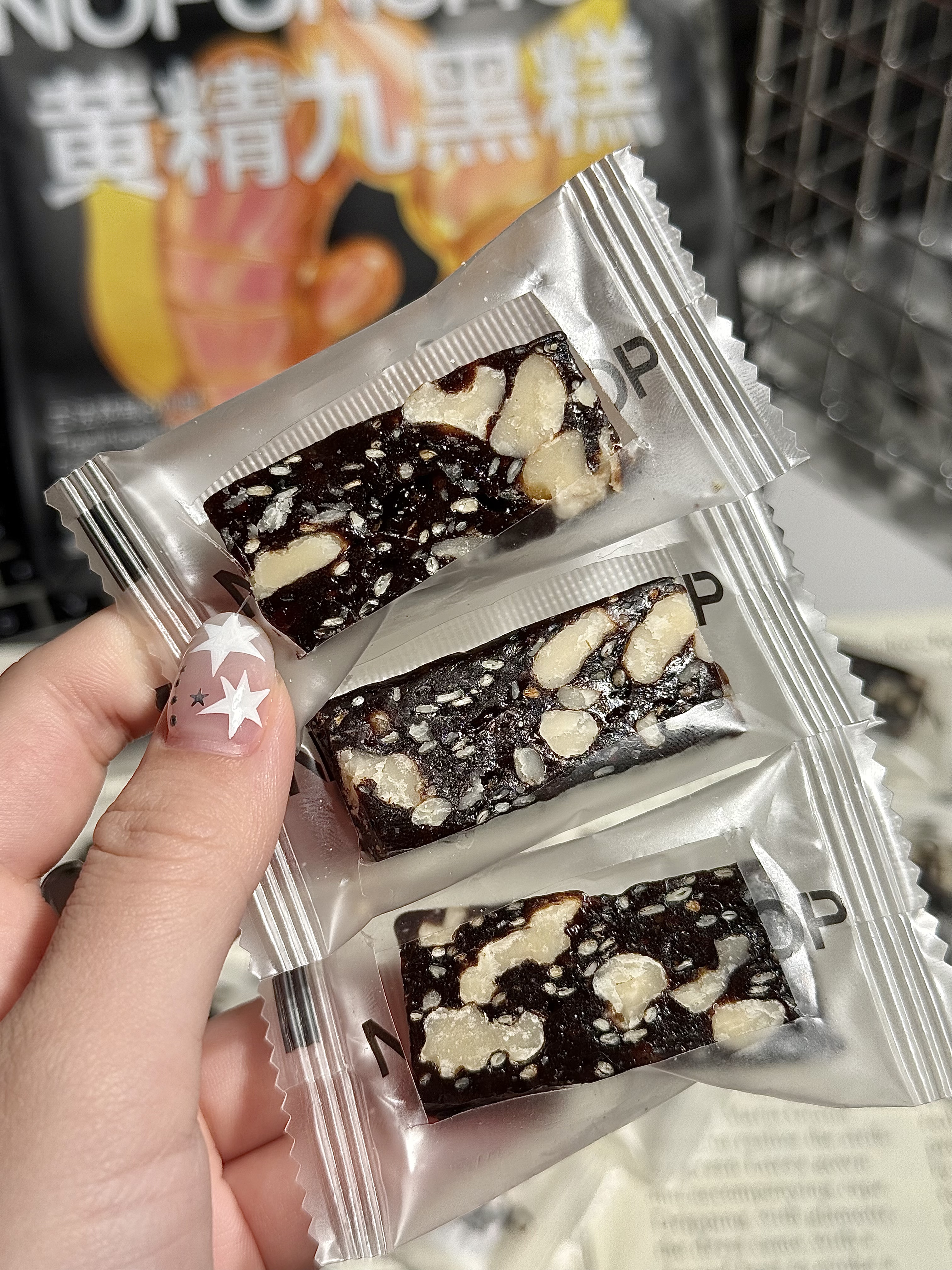✔️黄精九黑糕:黄精粉含量≥15%,还加了8种黑色食材,口感扎实,黑芝麻味超浓,吃着养生又解馋