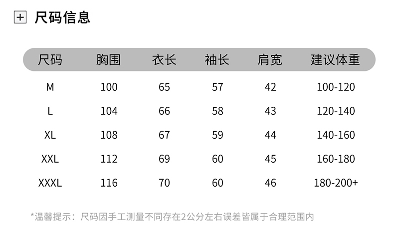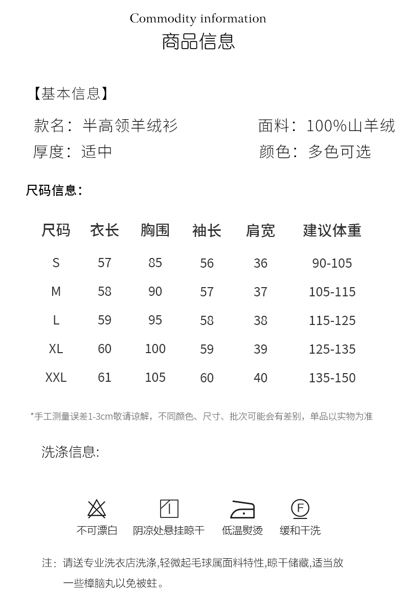 4.尺码信息以及推荐尺码数据根据平均身材得出,适用于大部分人群,仅供参考,买家也可以根据自己的穿衣喜好选择