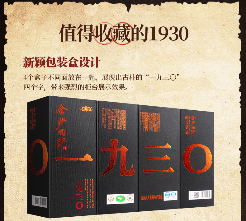 【推荐】金沙回沙酒 纪年酒1930 53度 500ml*6整箱装 酱香型白酒