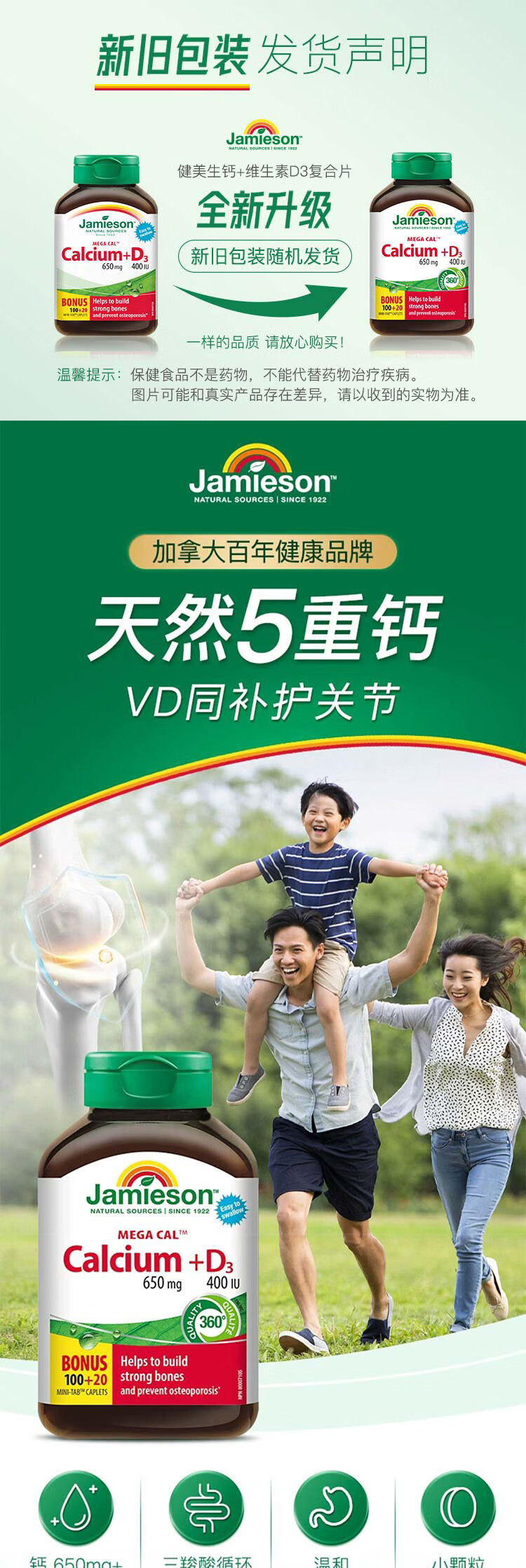 【保税仓】JAMIESON健美生钙+维生素D3复合片120片