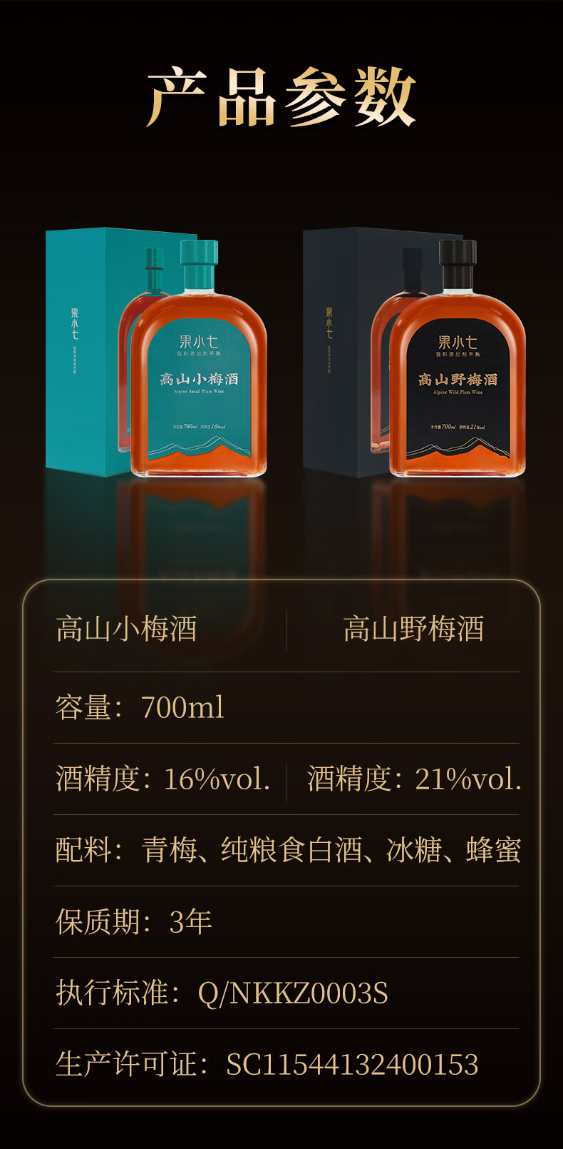 优选丨果小七高山野梅酒 700毫升装 果小七高山小梅酒 700毫升装