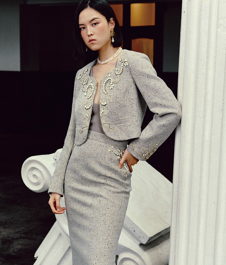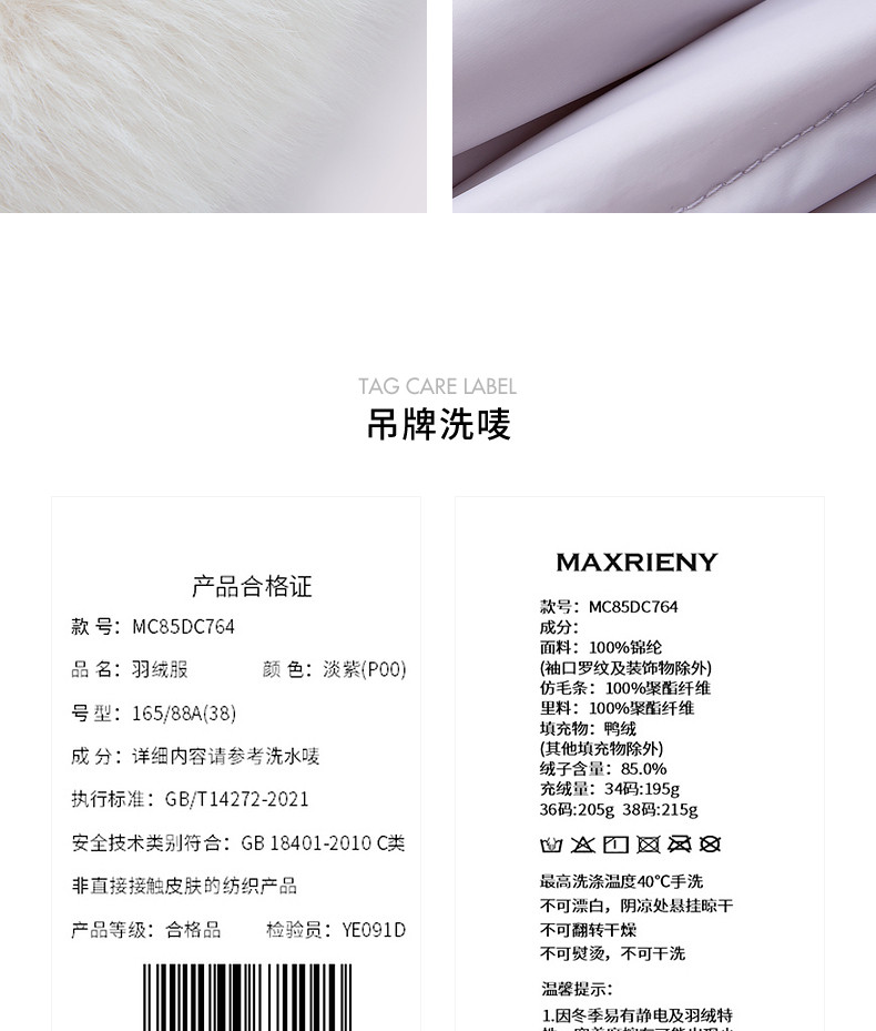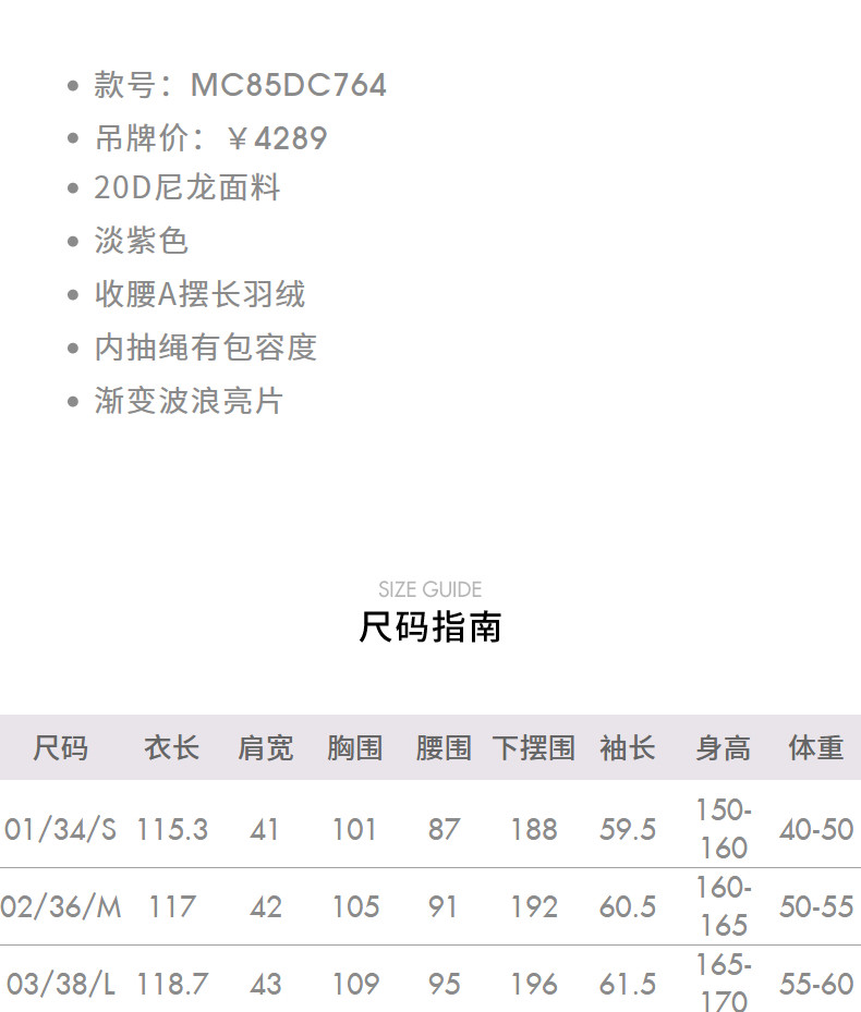 玛克门店发货:MAXRIENY亮片收腰羽绒服(货号:MC85DC764)