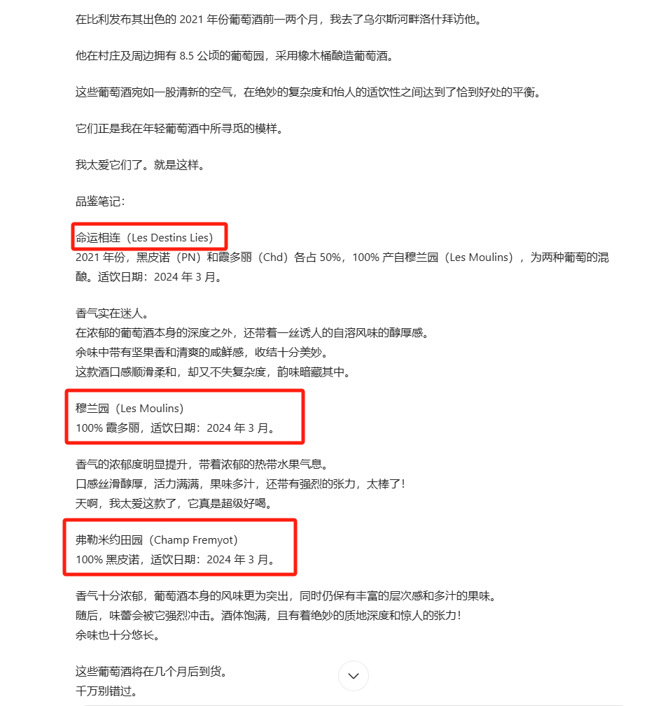 余韵中带有坚果气息与清爽的咸鲜感,收结优雅。这款酒口感从容舒展,却不失复杂度,层次丰富而不张扬。