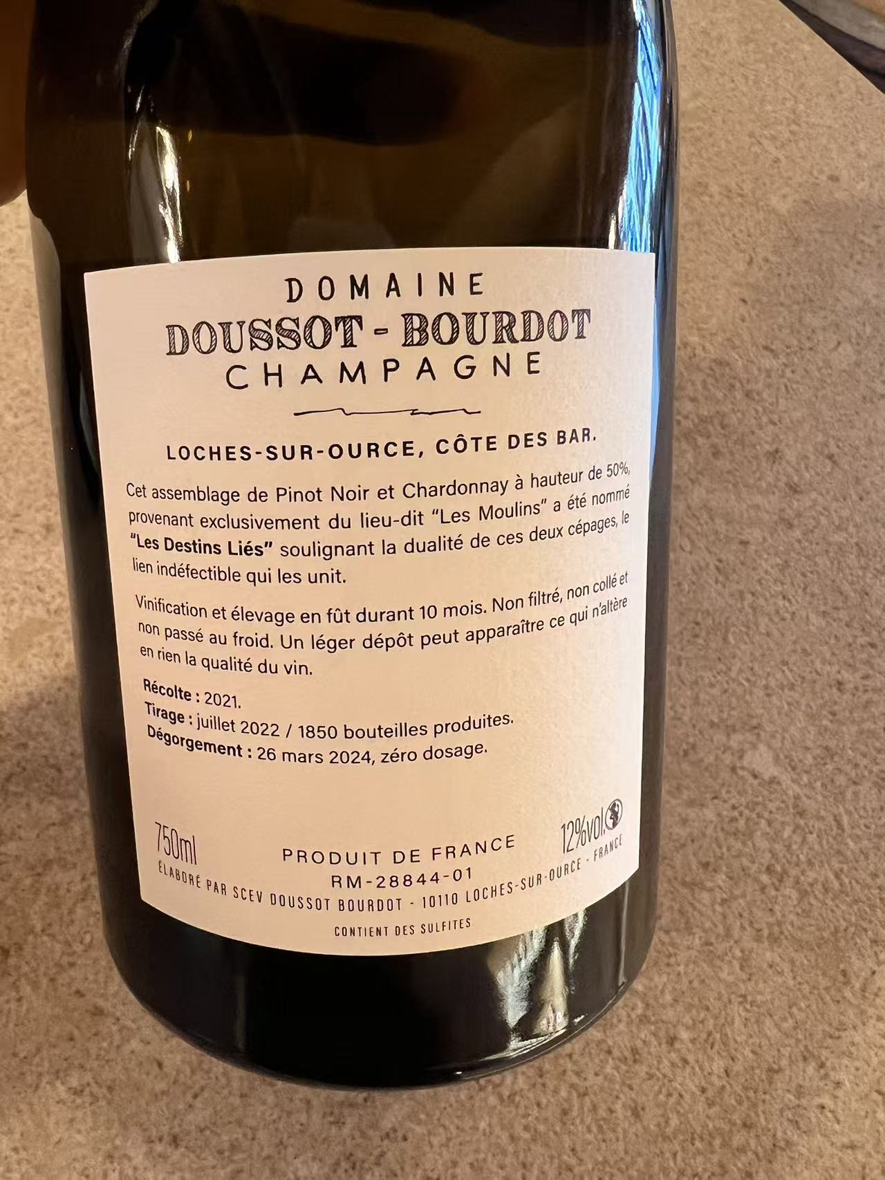 Doussot Bourdot, Les Destins Lies Brut Nature R21 杜索-布尔多酒庄‘命运相连’年份香槟 2021