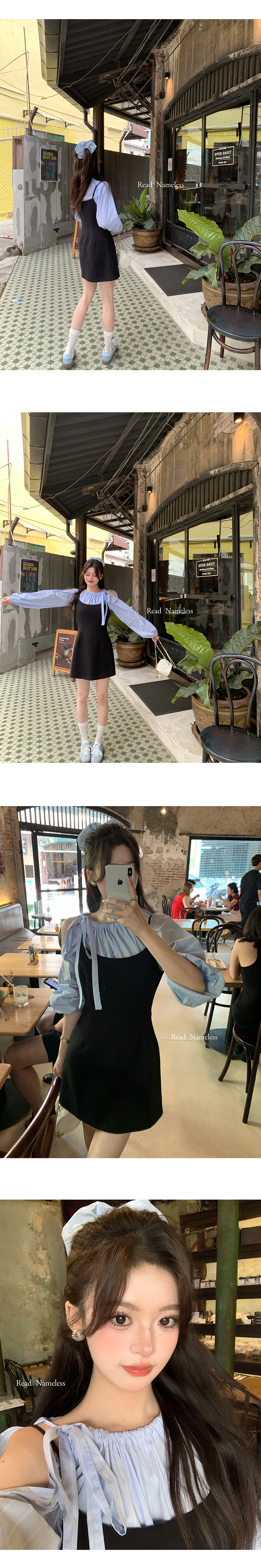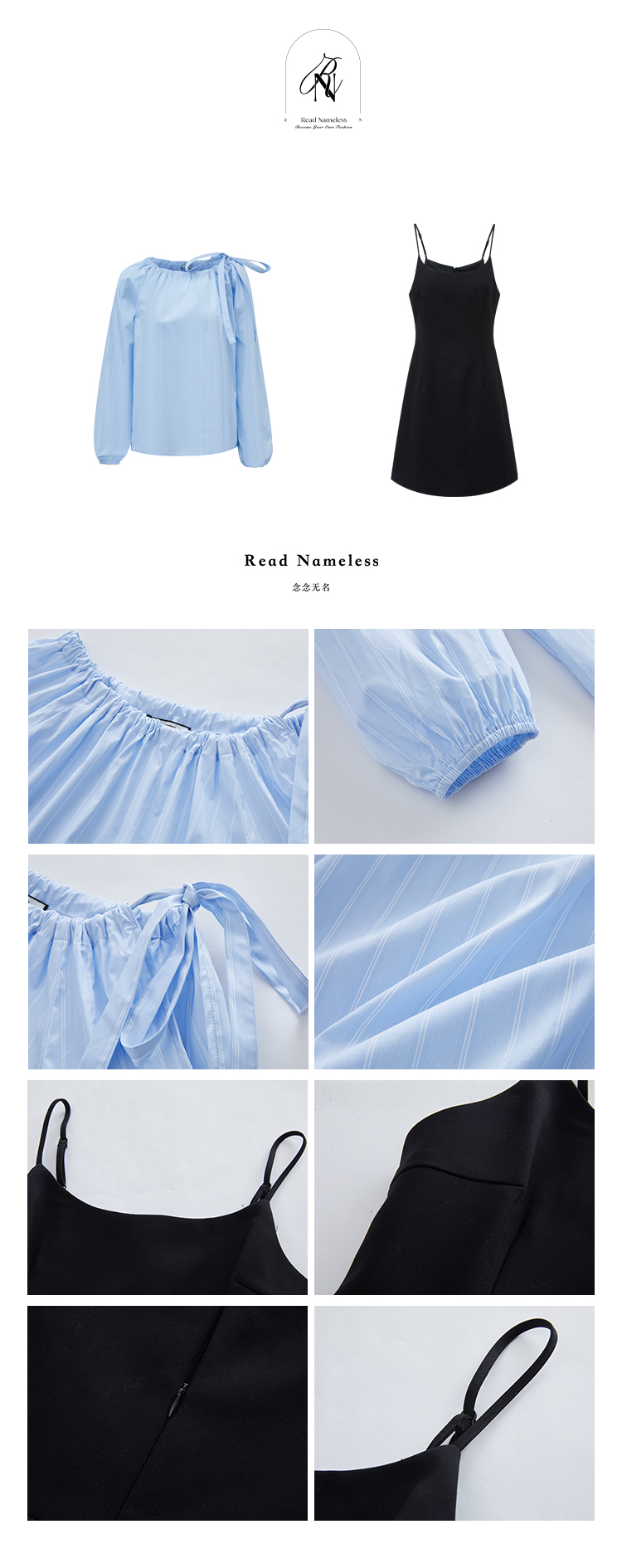 Read Nameless /韩国蓝色挖肩衬衫+黑色双c腰吊带裙 2025/7/24
