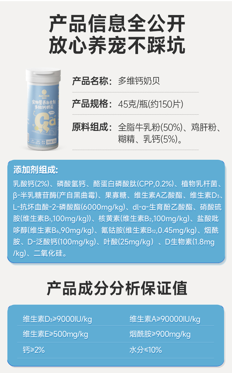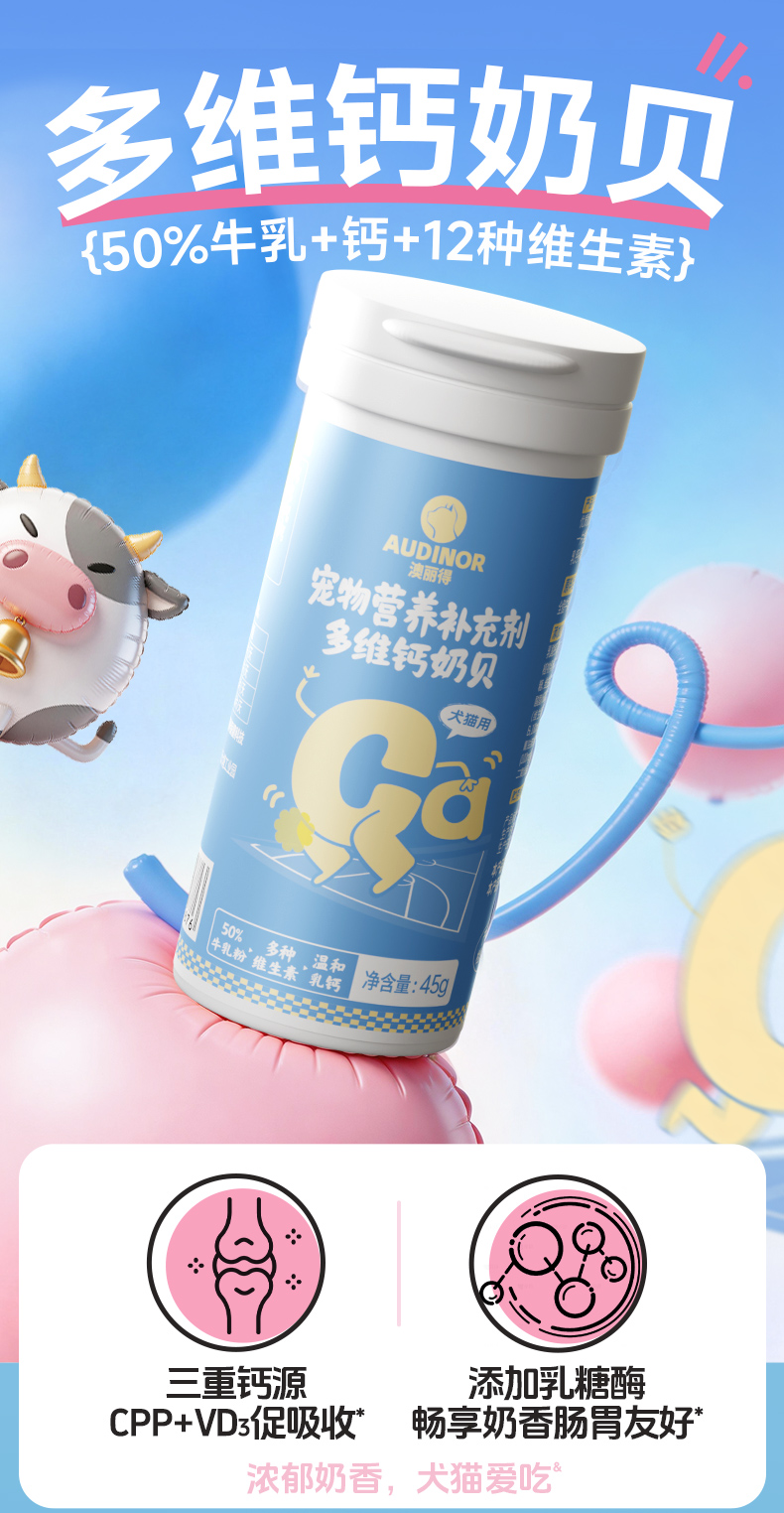 雷米高澳丽得多维钙奶贝补钙补多种维生素呵护肠胃日常营养补充犬猫通用