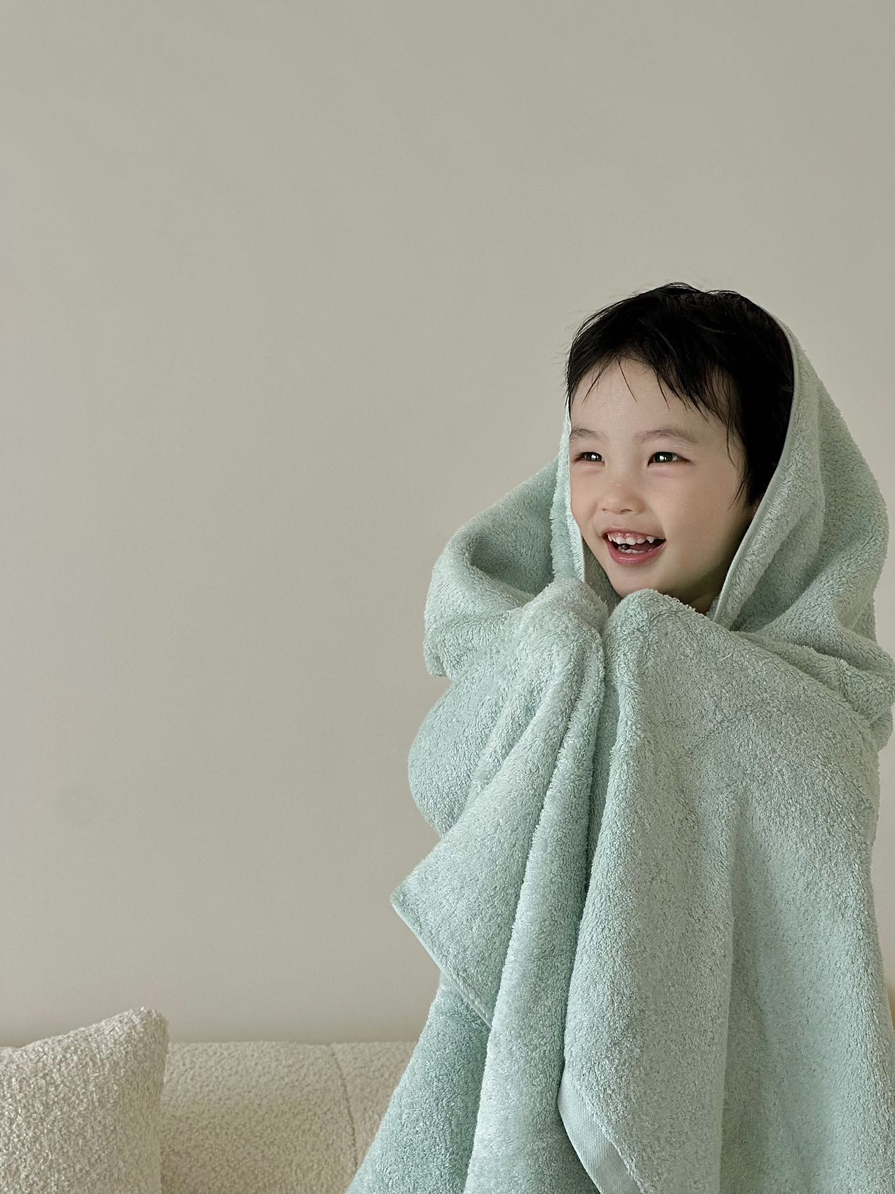 小孩皮肤娇嫩,家里的浴巾洗过几次、再一暴晒,就会变干硬、粗糙