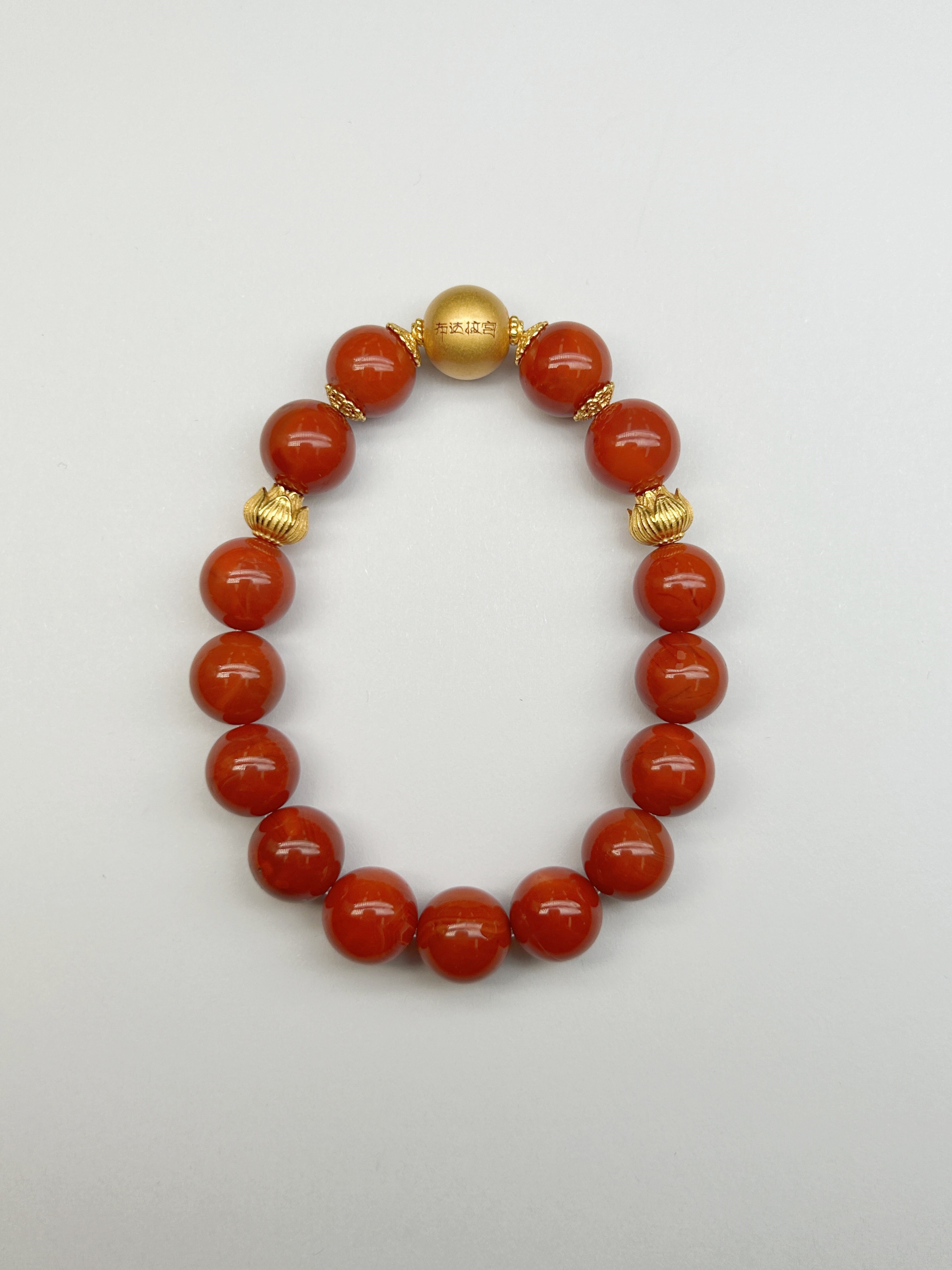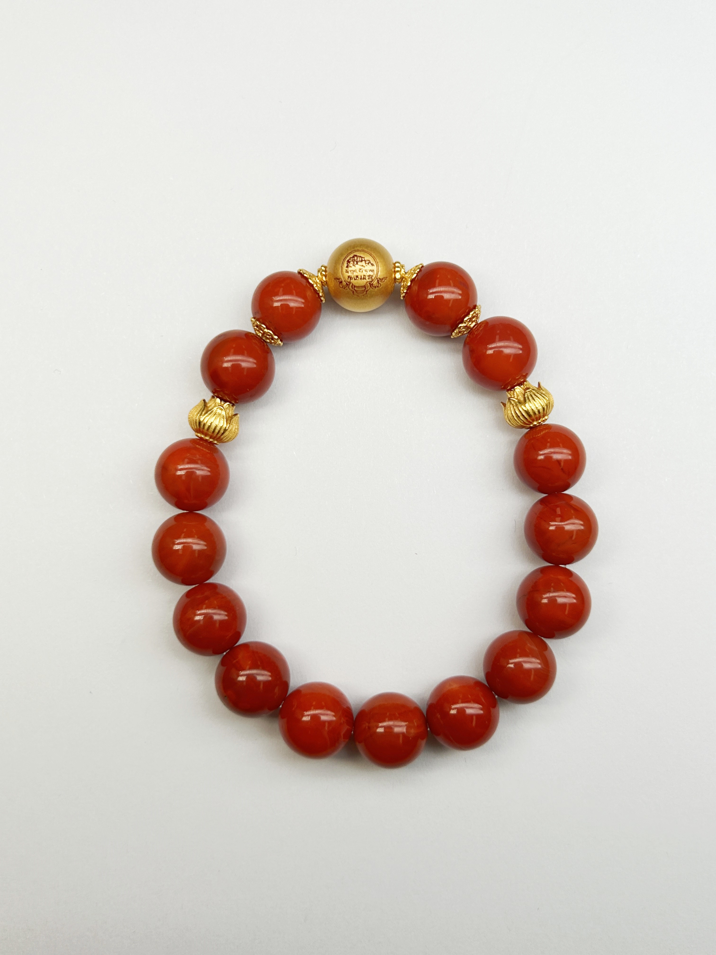 材质:南红玛瑙、布达拉宫银镀金logo珠