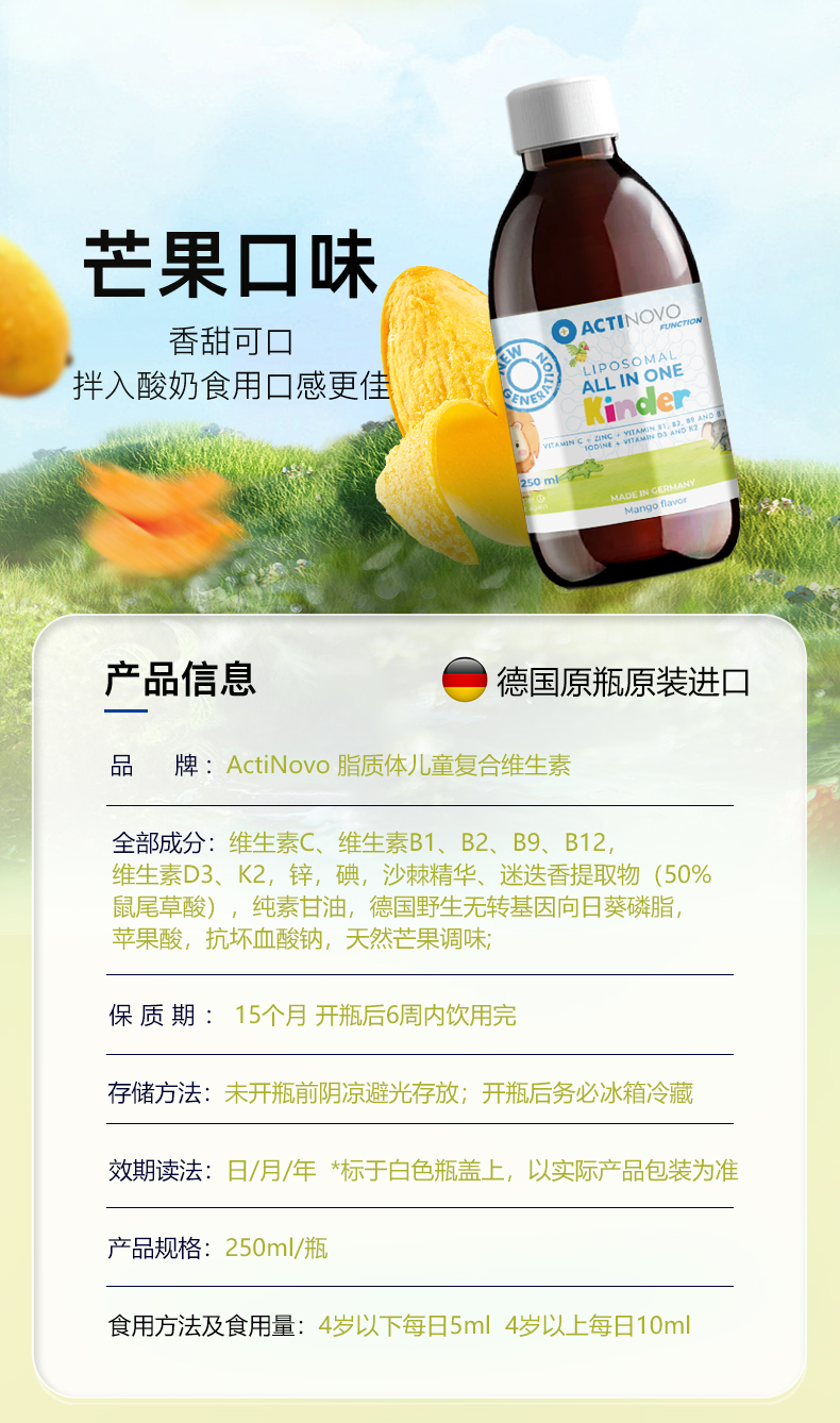 【V健康专享】ActiNovo脂质体液体复合维生素儿童250ml