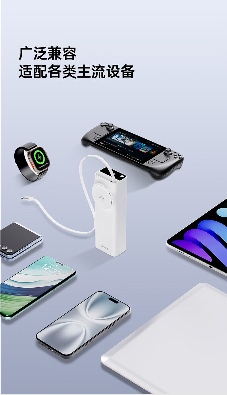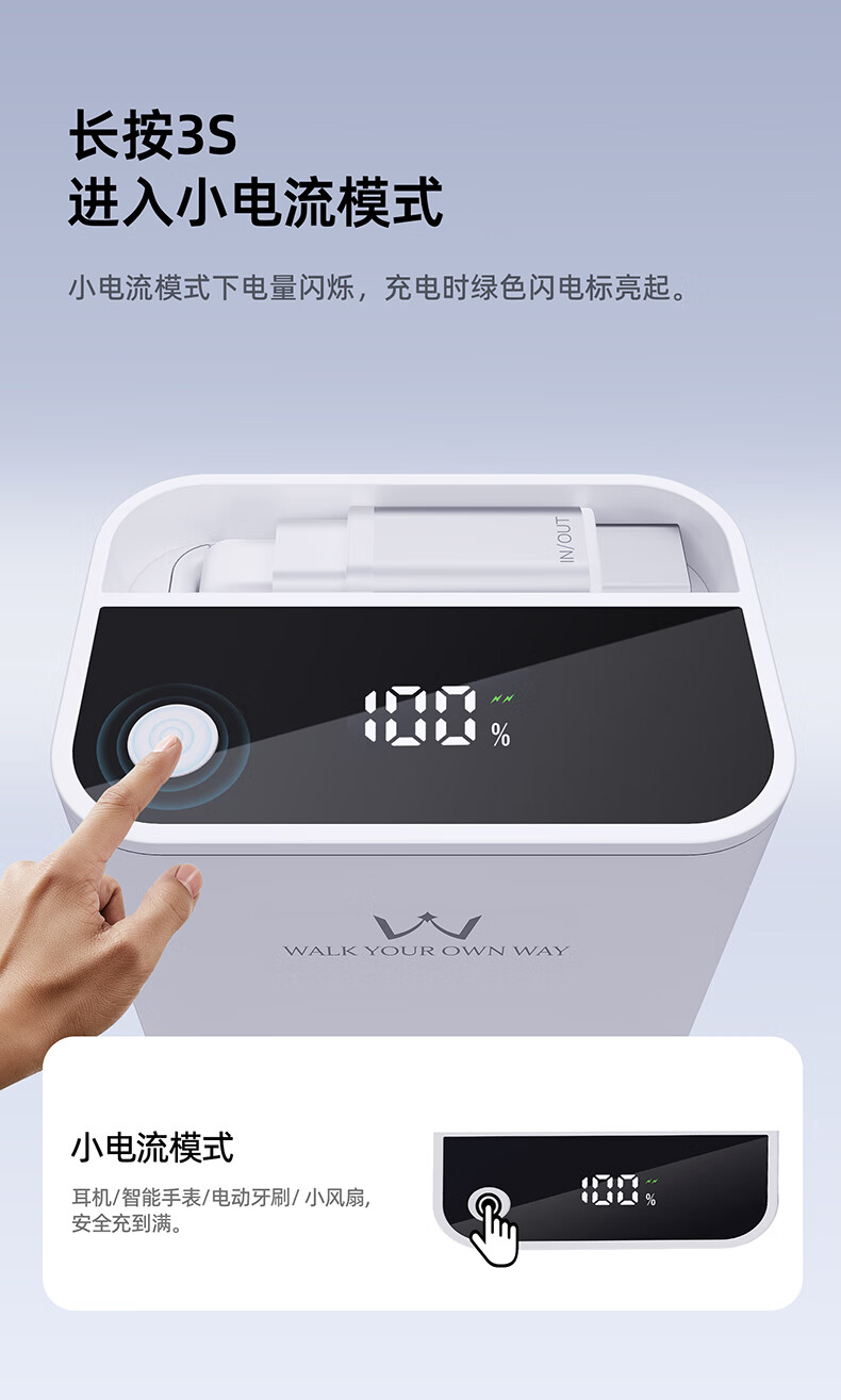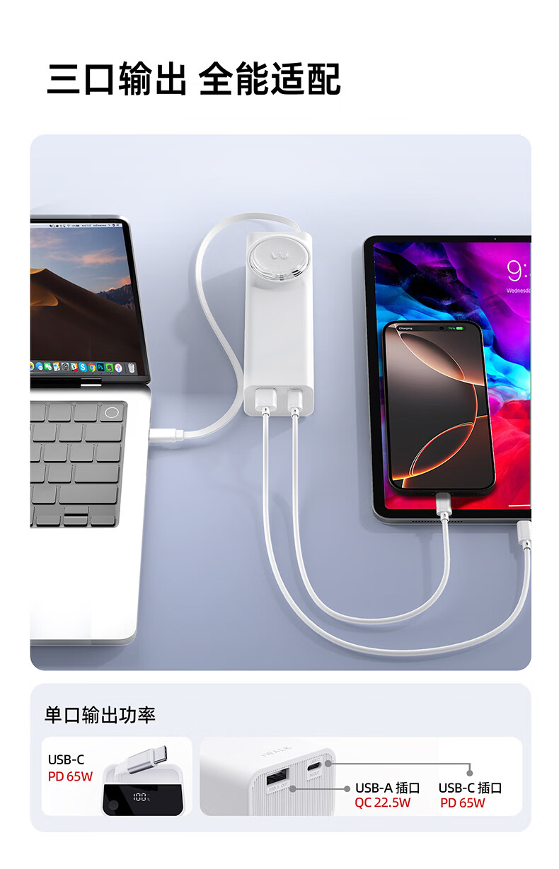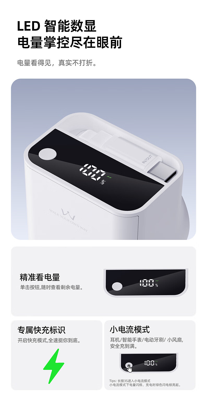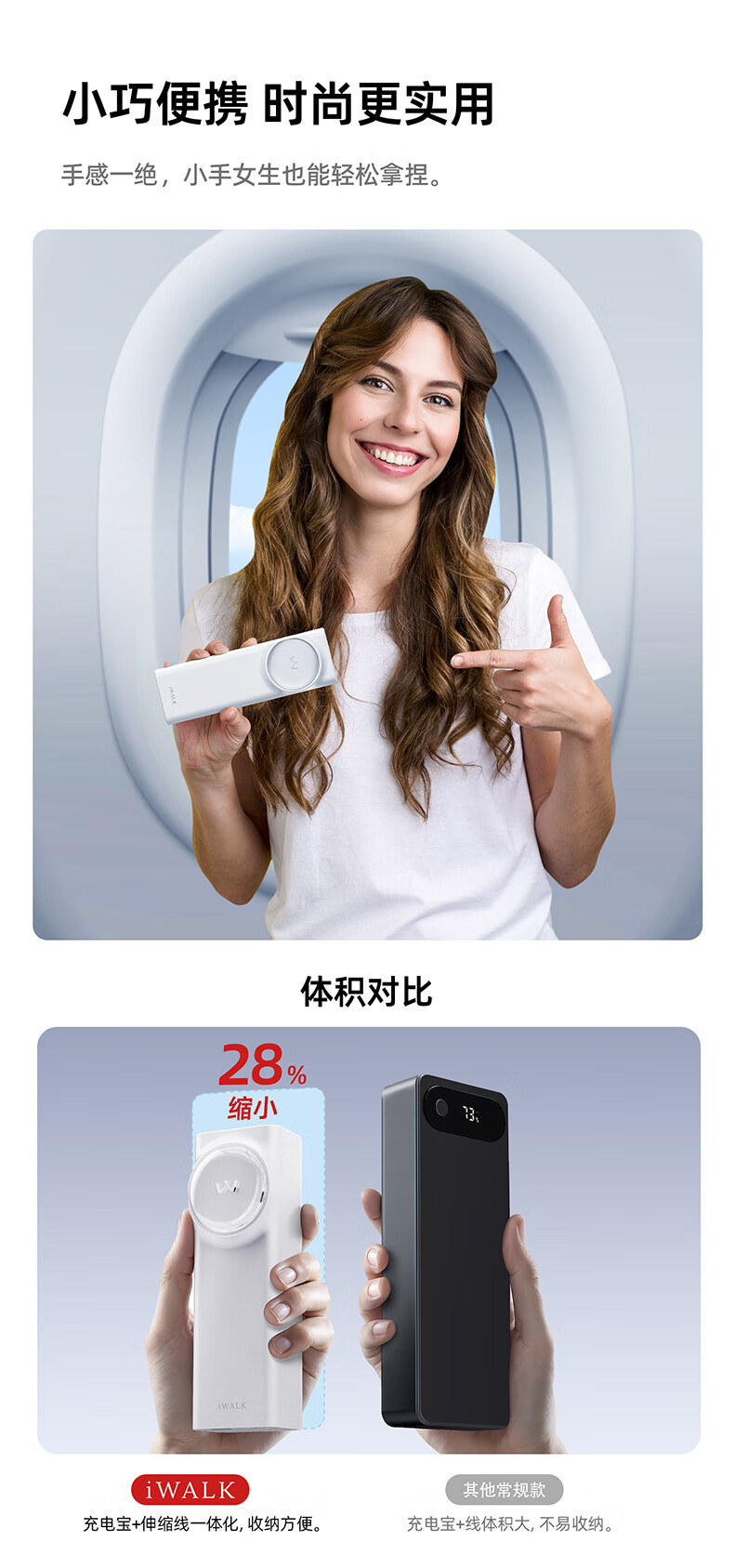 【国家3C认证】爱沃可(iWALK)拉拉宝20000毫安充电宝LPR002L/C 自带线双向65W快充便携笔记本电脑适用苹果华为小米小巧大容量手机电源