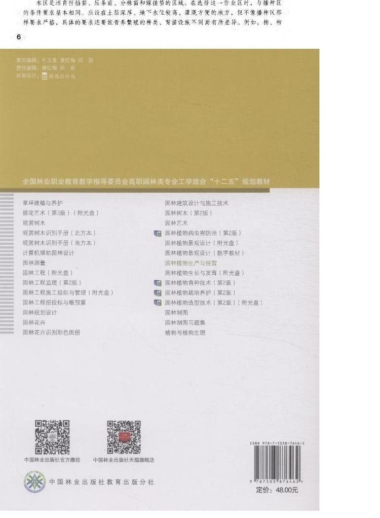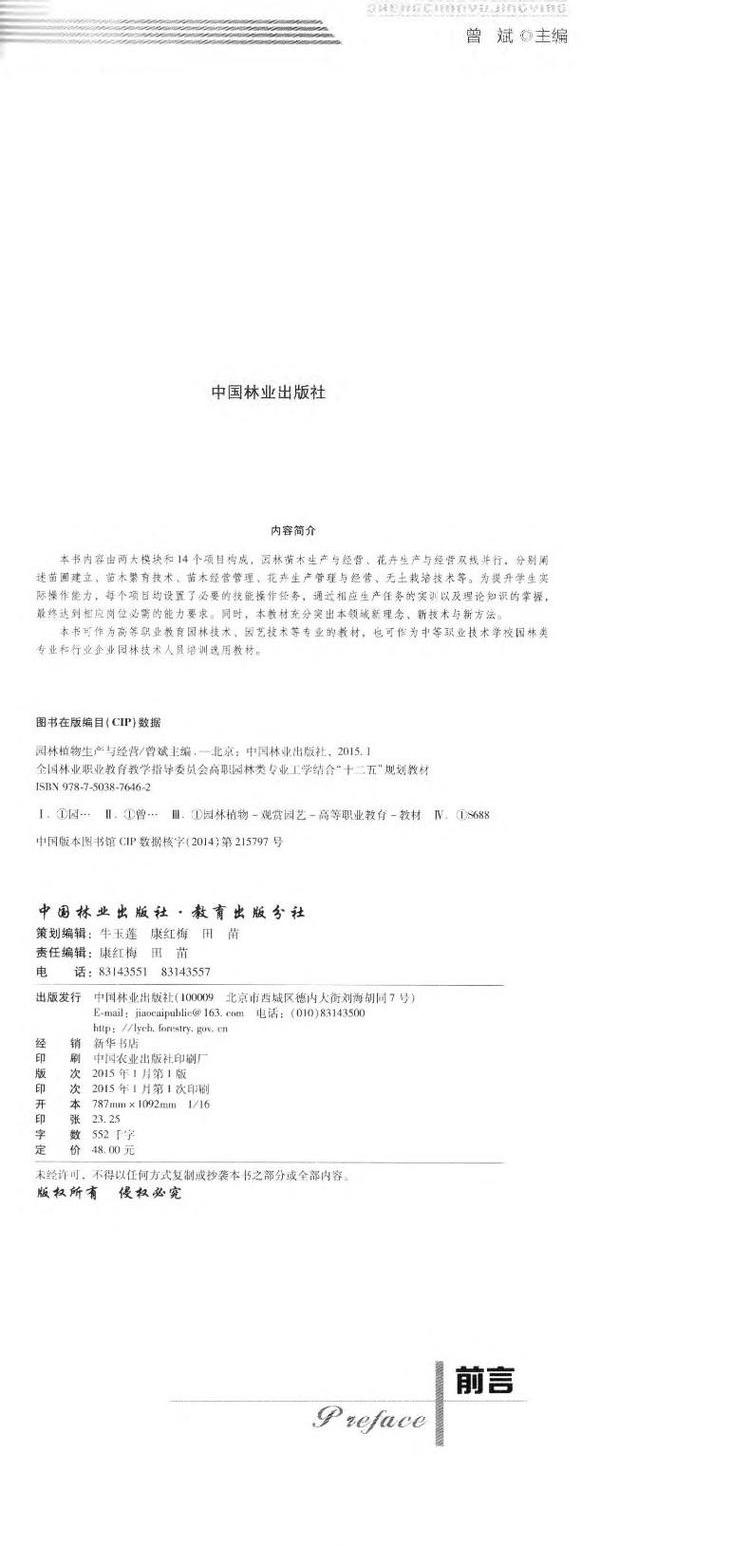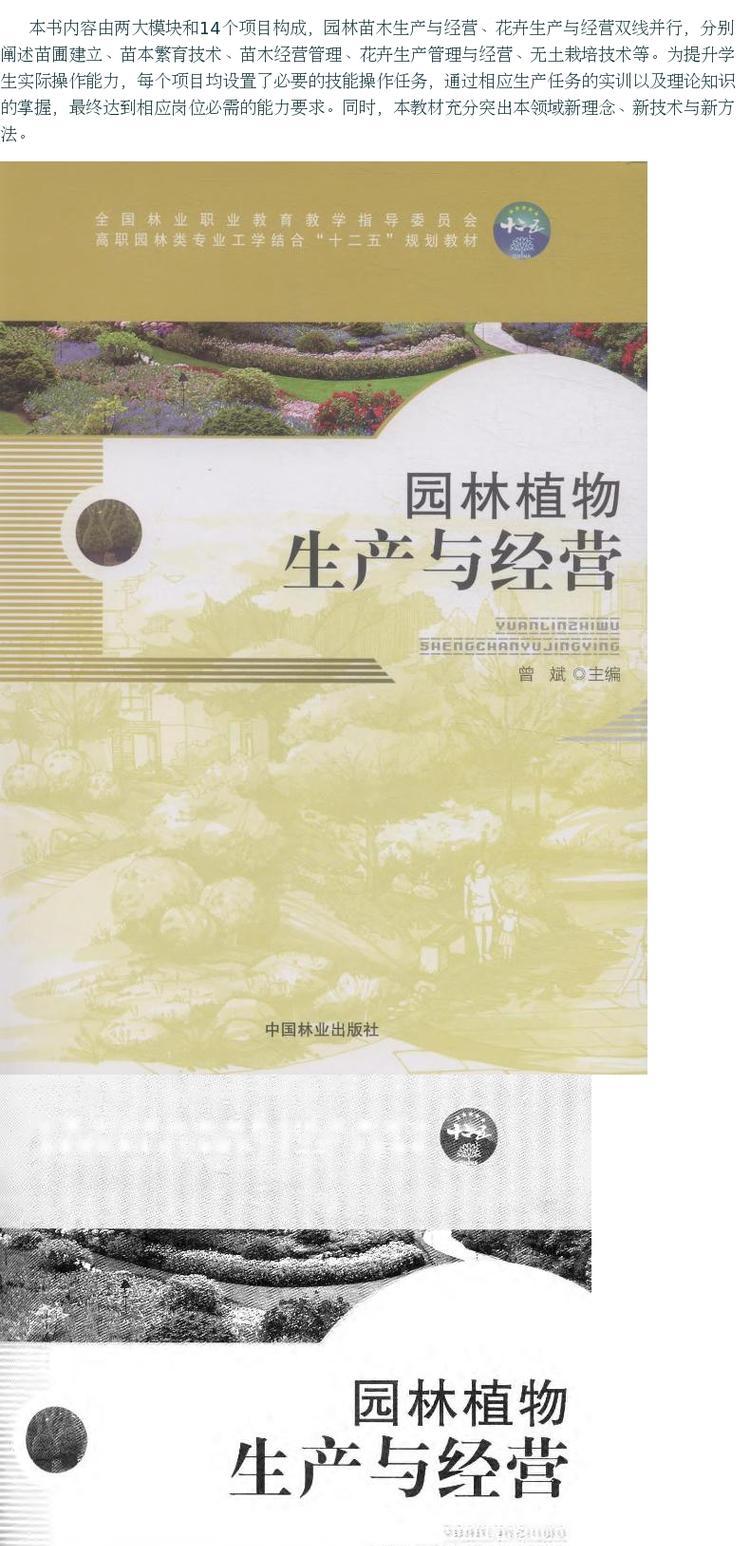 园林植物生产与经营 7646 全国林业职业教育教学指导委员会 高职园林类专业工学结合十二五规划教材 中国林业出版社