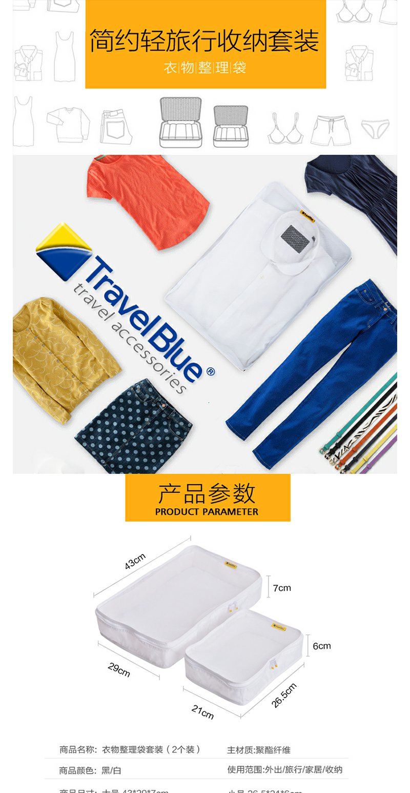 蓝旅(TRAVEL BLUE)2个衣物收纳袋旅行 衣服分类收纳包 330