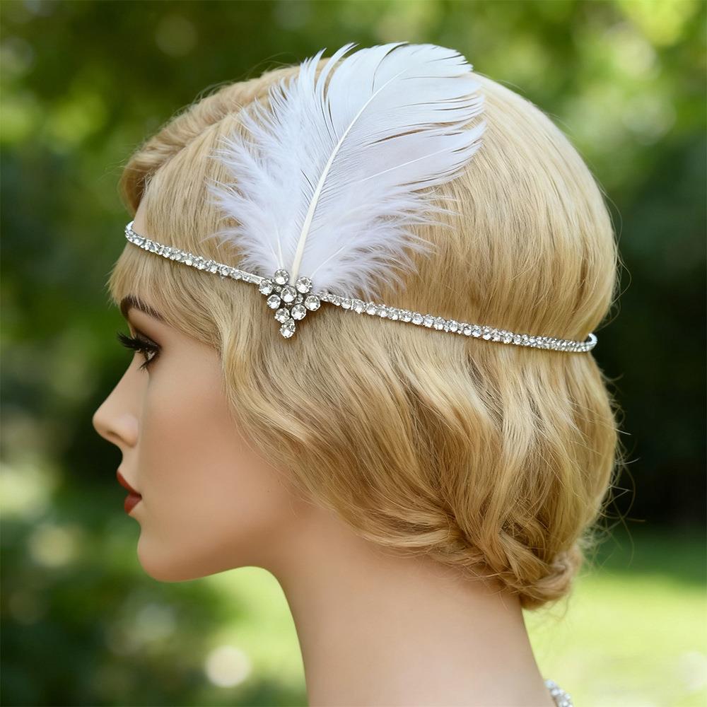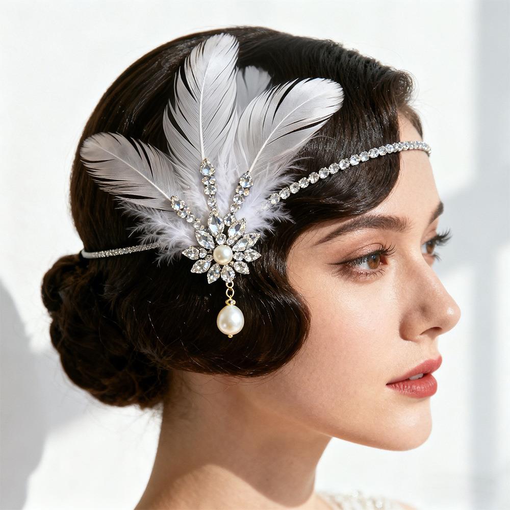 Hair accessories【盖茨比羽毛发链】2026时髦水钻发饰女款
