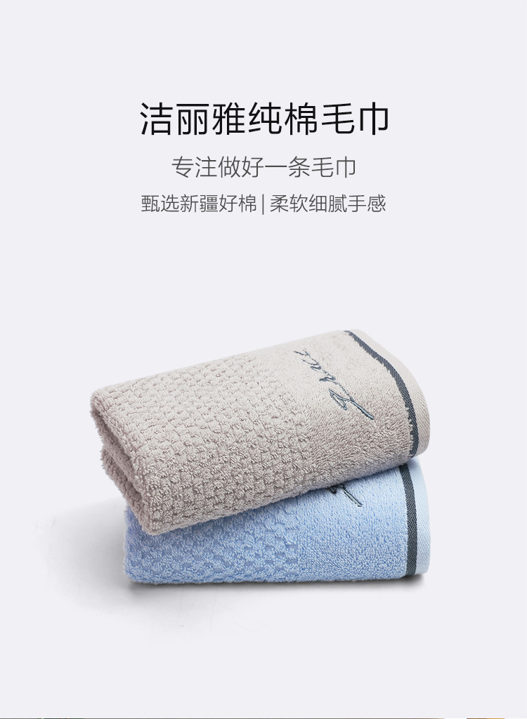 洁丽雅 简约纯棉毛巾2条装7253A(颜色随机)