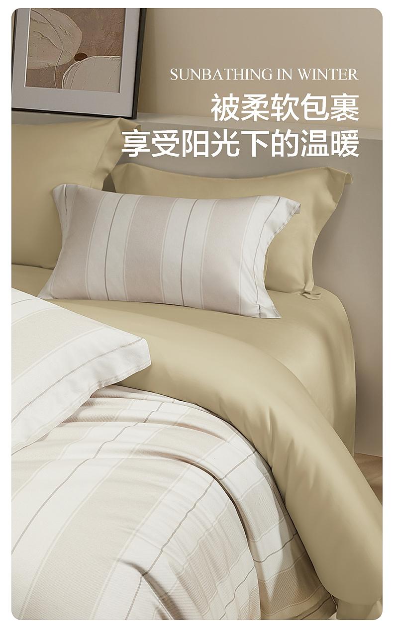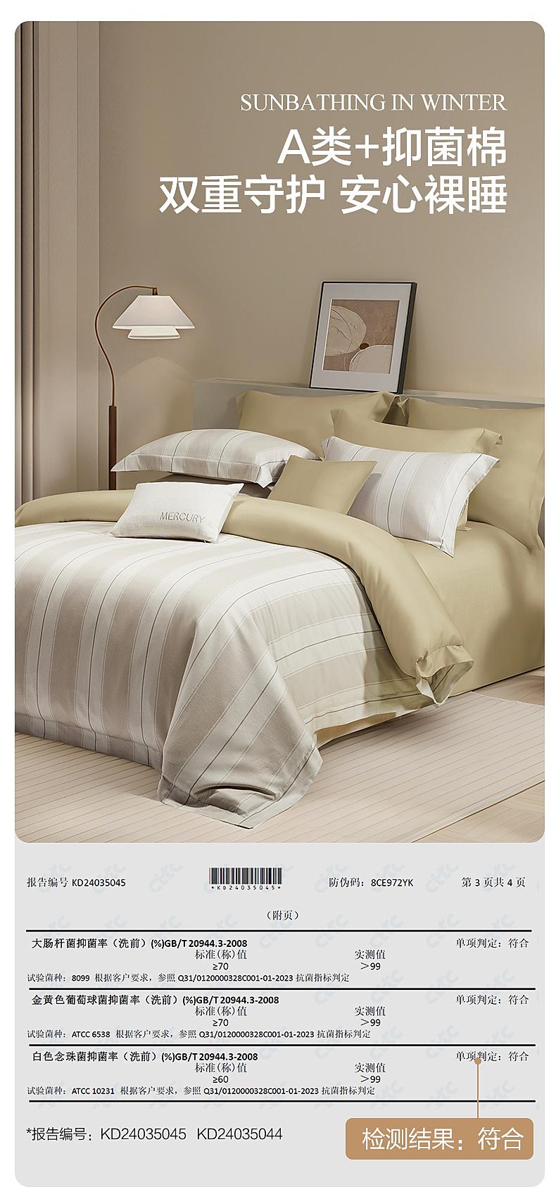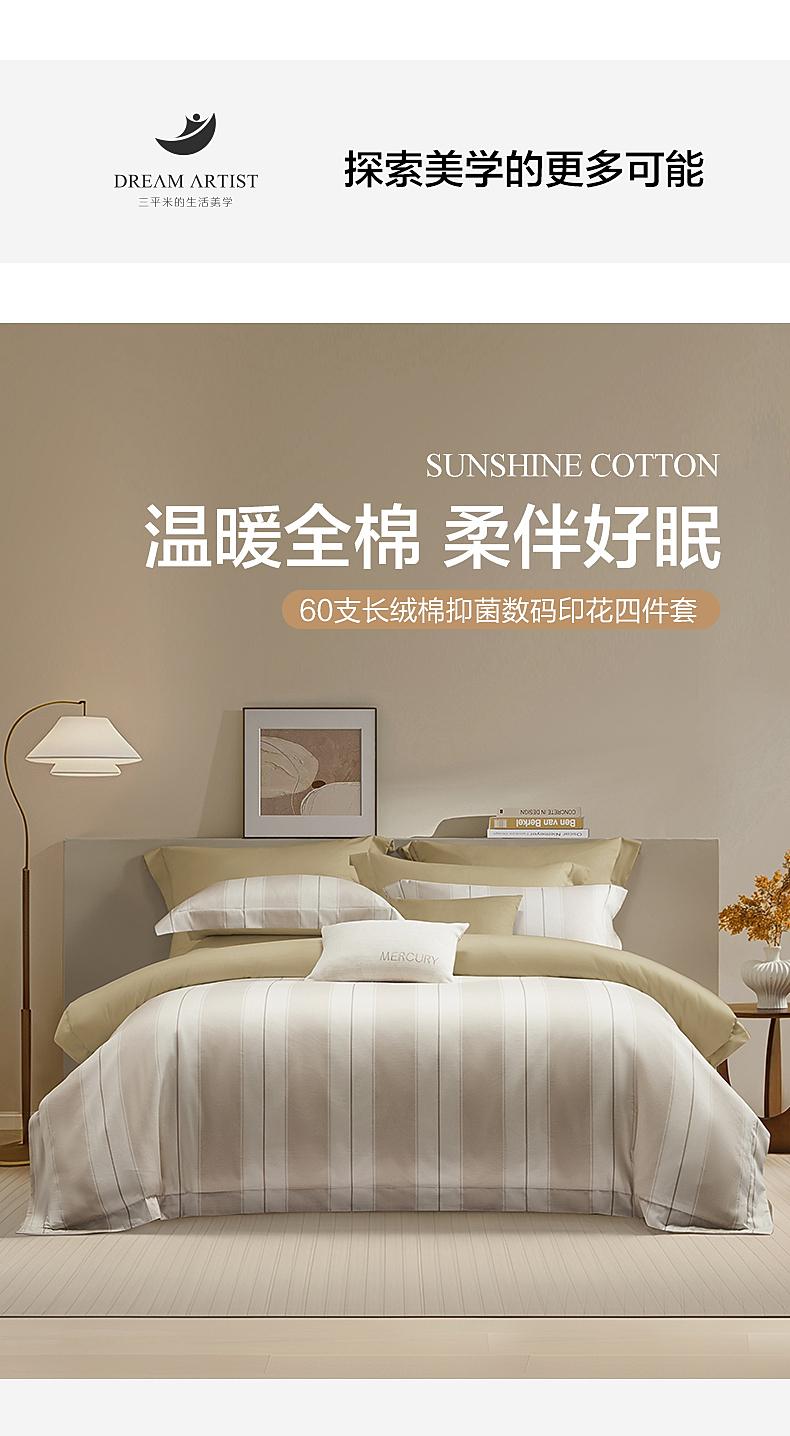 水星家纺北欧风60支长绒棉数码印花四件套简约透气抑菌套件严选