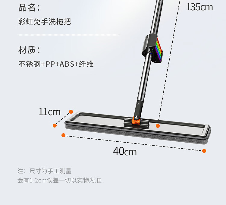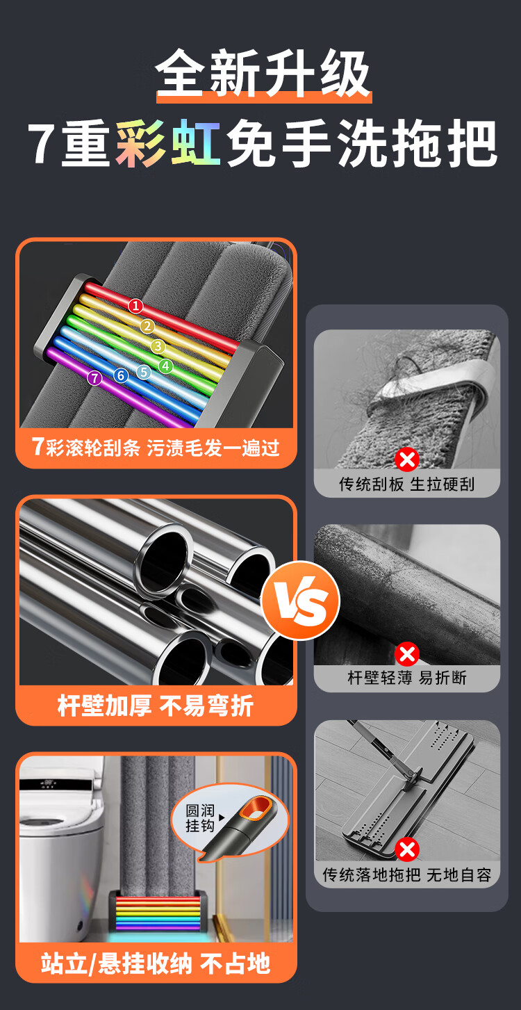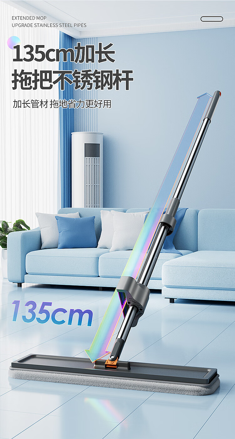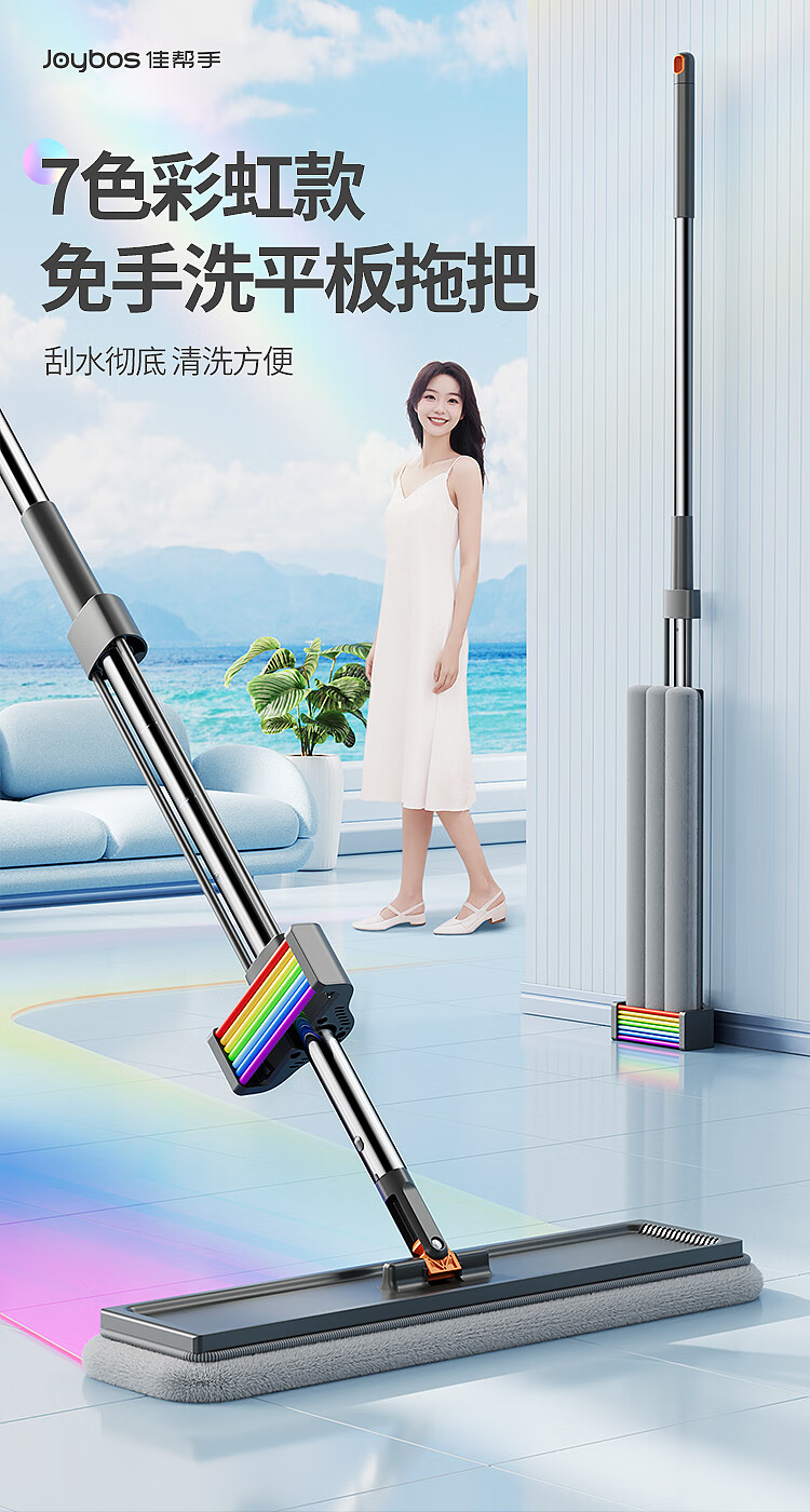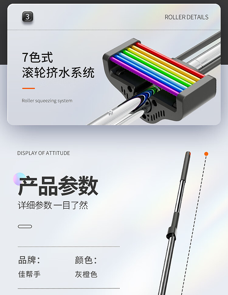 佳帮手 平板拖把 扫除道二代彩虹塑板免手洗平拖40-灰橙2布JBS-PBTB-CHJ140-GOG2P