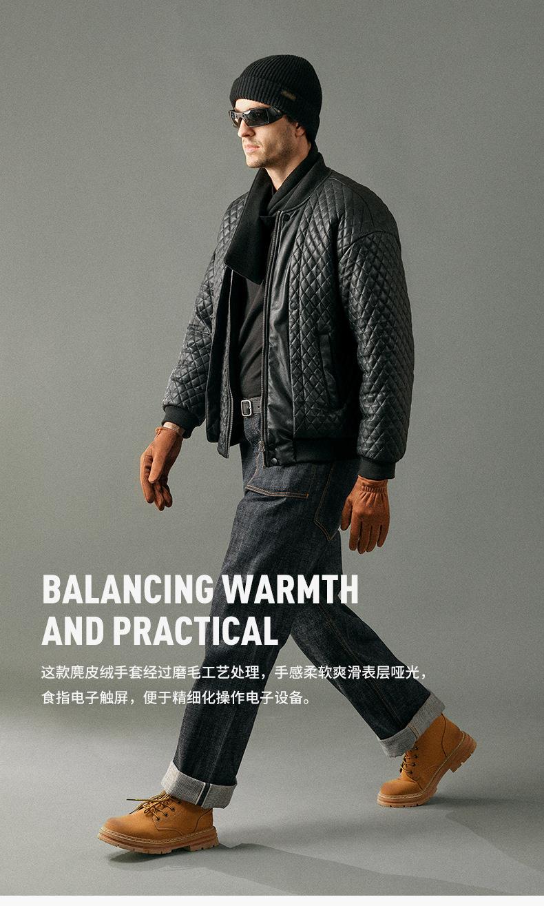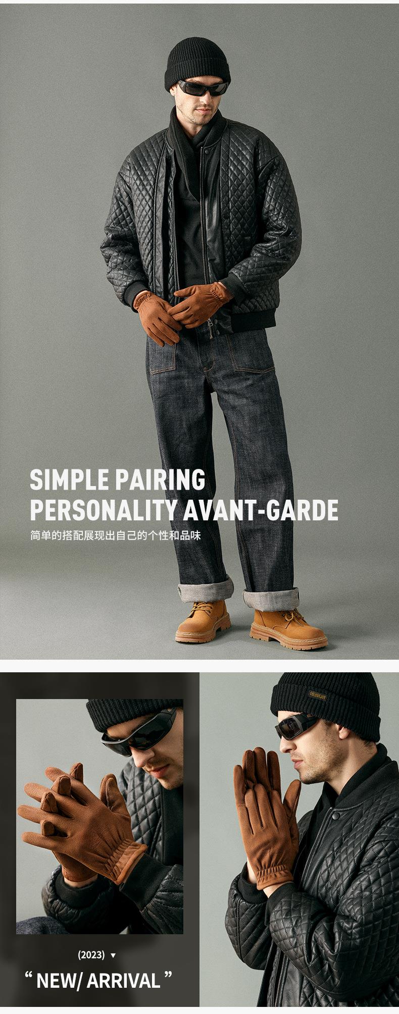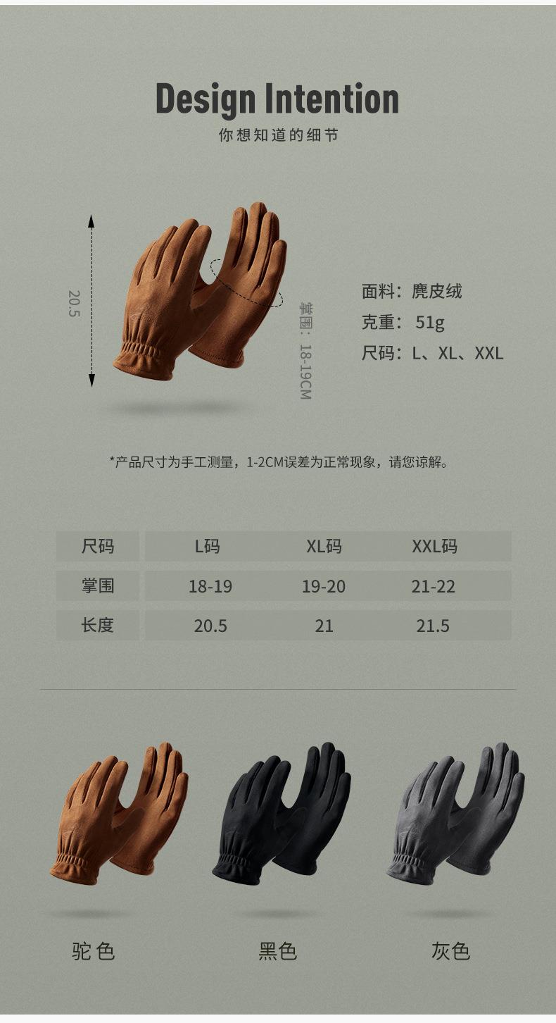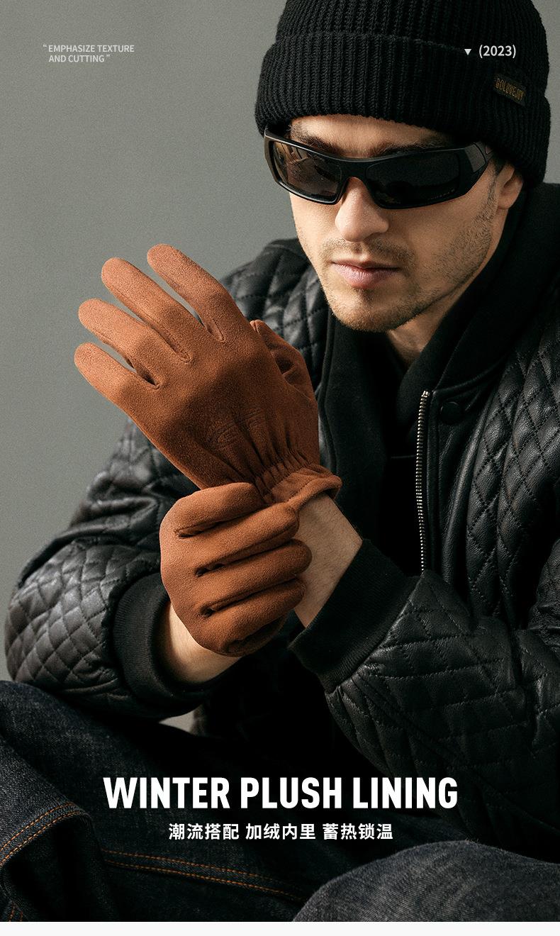 2024男士冬季户外骑行麂皮绒手套男士防风加厚加绒针织触屏保暖手套DY55