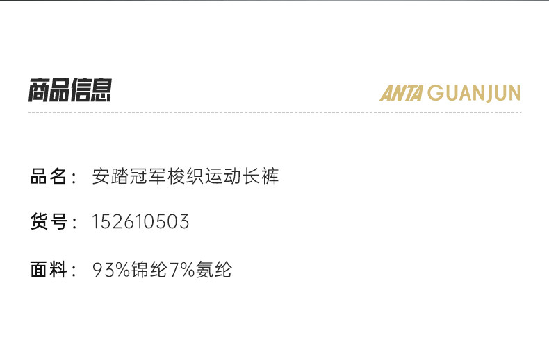 安踏冠军智型裤 | 全天候荣耀男梭织运动长裤冬季直筒裤152610503