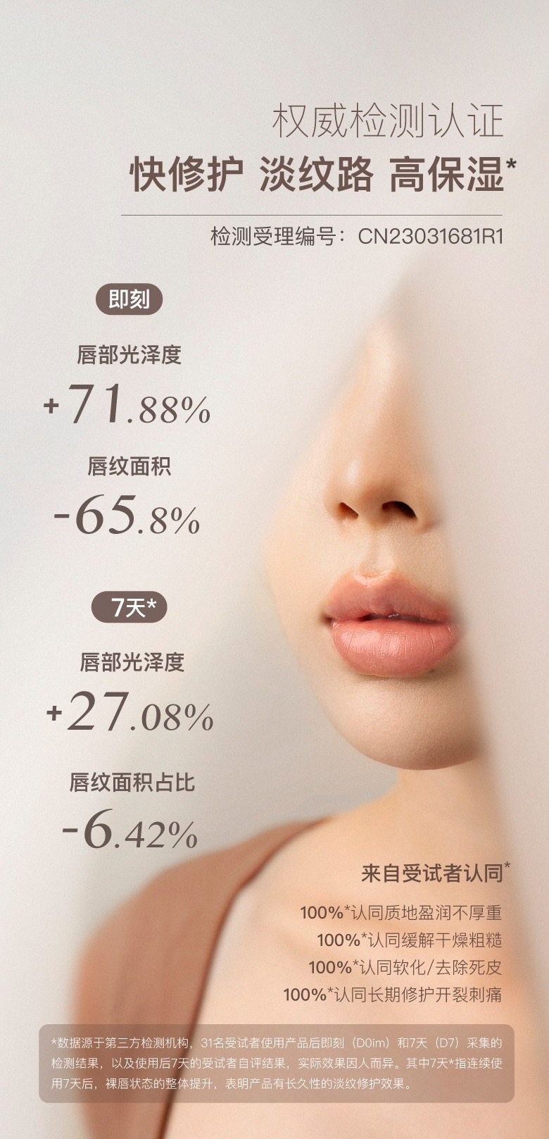 光泽度仍提升27.08%,唇纹面积减少6.42%。