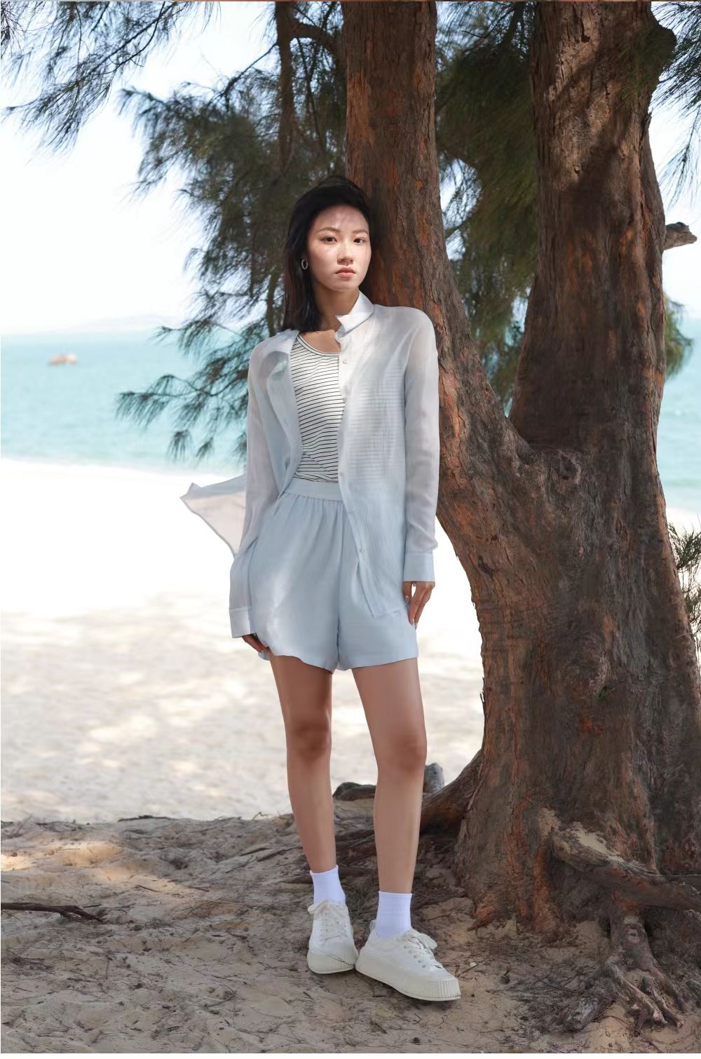 DT.LANDO 法式复古衬衣百搭短裤套装