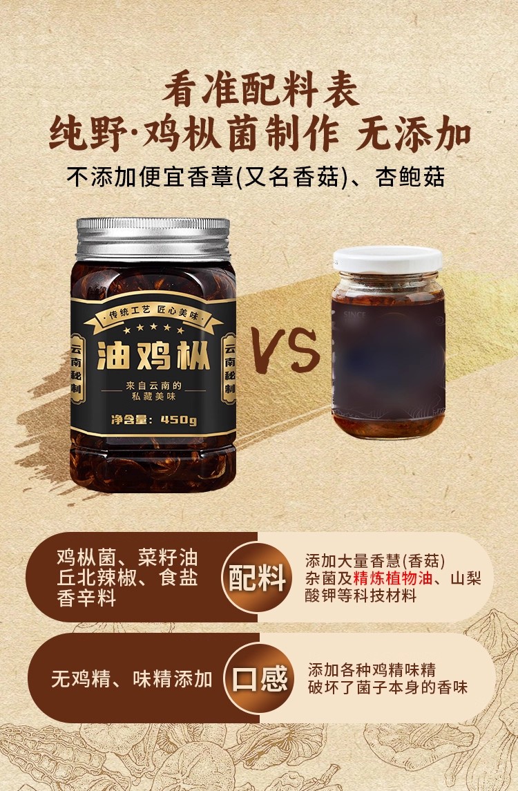 在菌屋 升级款纯野油鸡枞菌450g/瓶 原料只有鸡枞菌 没有香菇杂菇充重 固形物≥40% 开盖即食 鸡枞香脆浓郁 越嚼越香