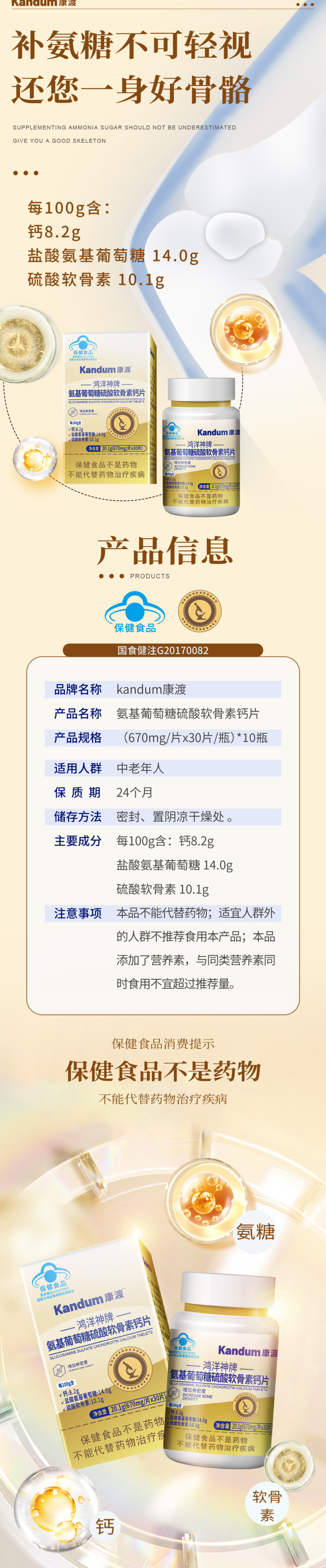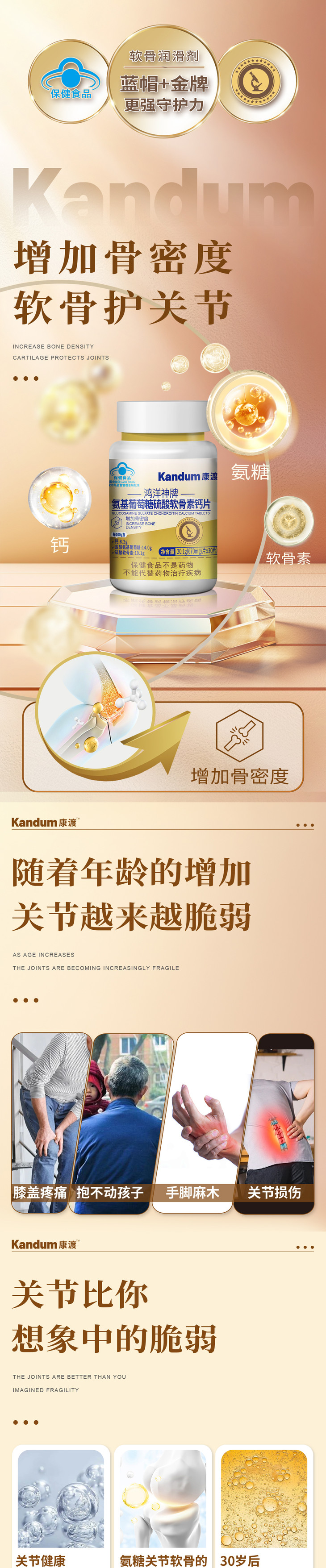 一价到底 【康渡氨糖软骨素钙片】关节养护不能只补钙,钙+氨糖+软骨素,三大营养增强您的骨密度!10瓶到手只要169!