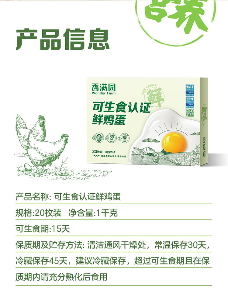 香满园可生食鸡蛋20枚装NSF和可生食双认证
