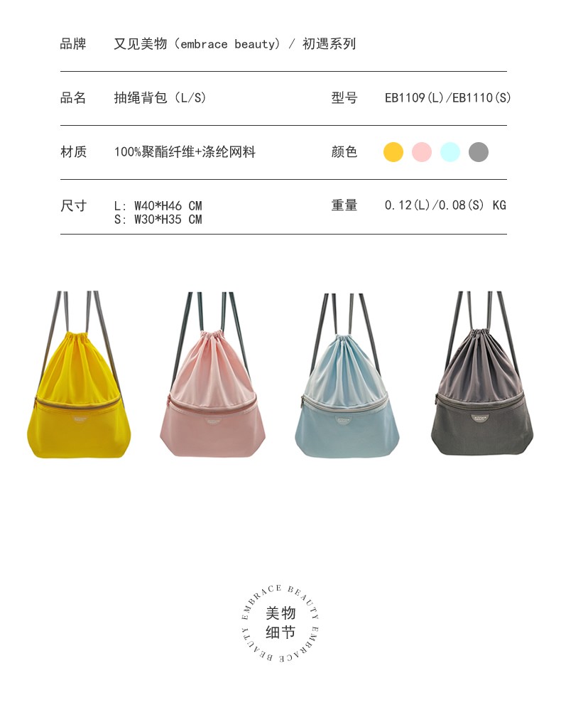 又见美物 抽绳背袋(L) 休闲运动可配情侣亲子款背包 轻便防泼水耐磨 EB1109
