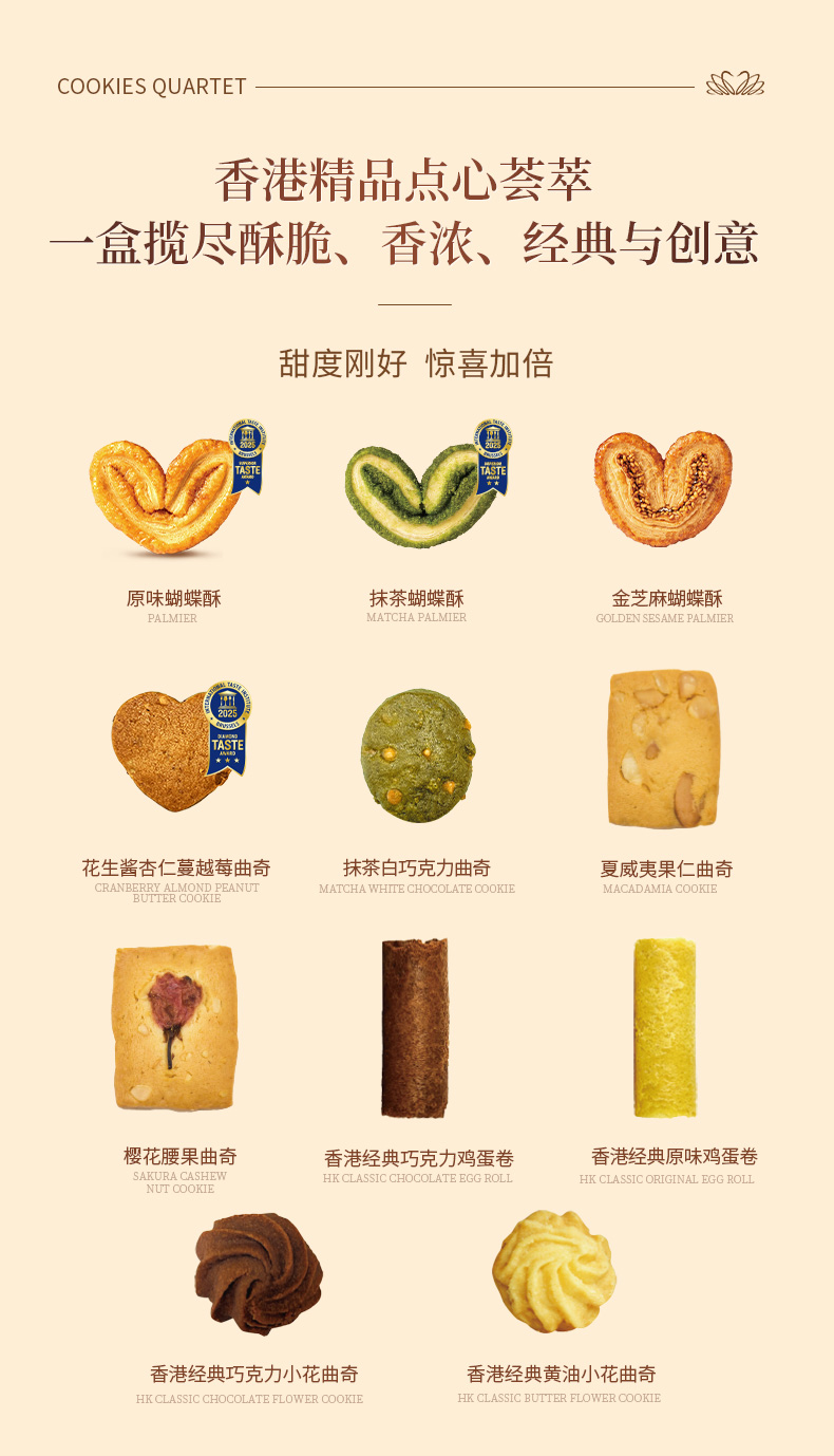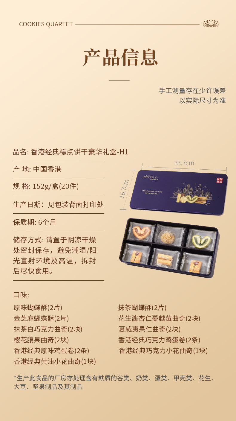 曲奇四重奏香港经典糕点饼干豪华礼盒152g/盒(20件)