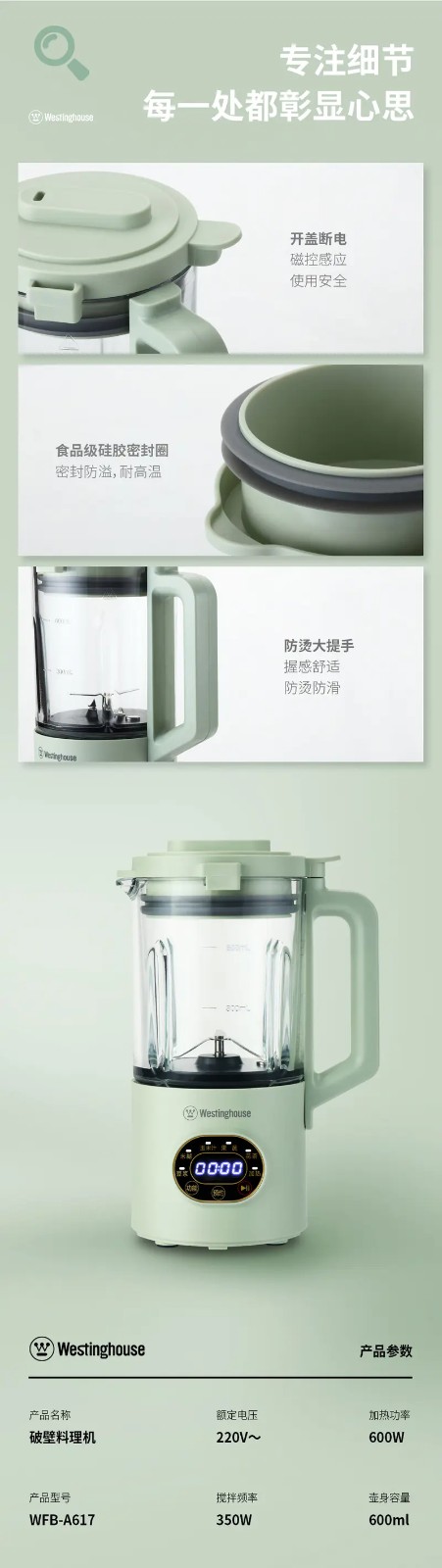 西屋Westinghouse破壁机料理机豆浆机全自动料理辅食机WFB-A617