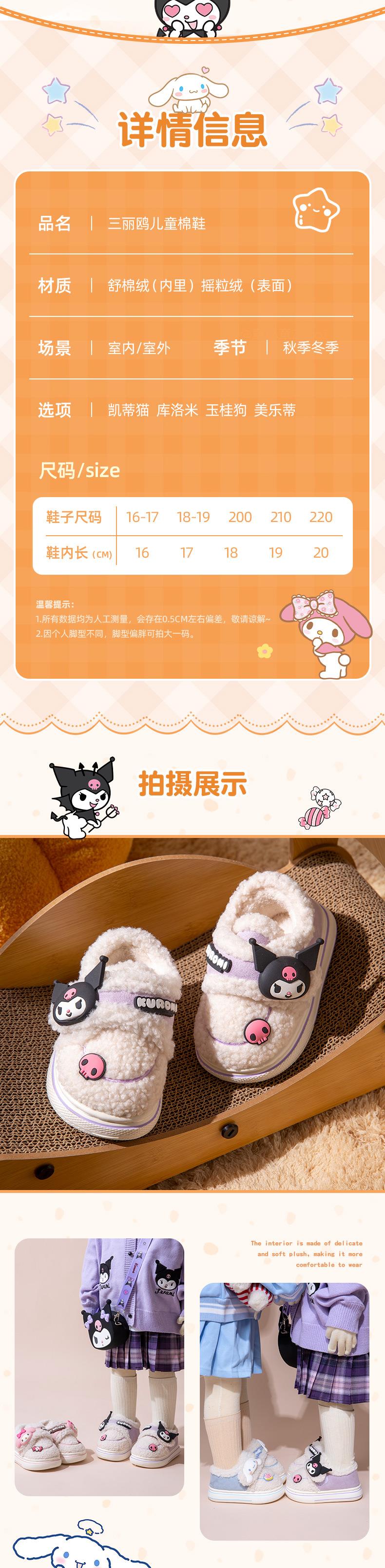 【库洛米儿童棉拖鞋】秋冬季女童公主三丽鸥室内保暖加绒亲子鞋