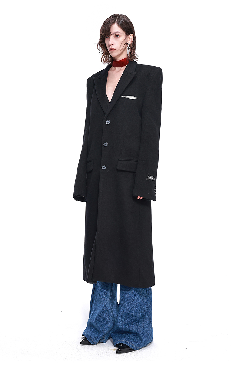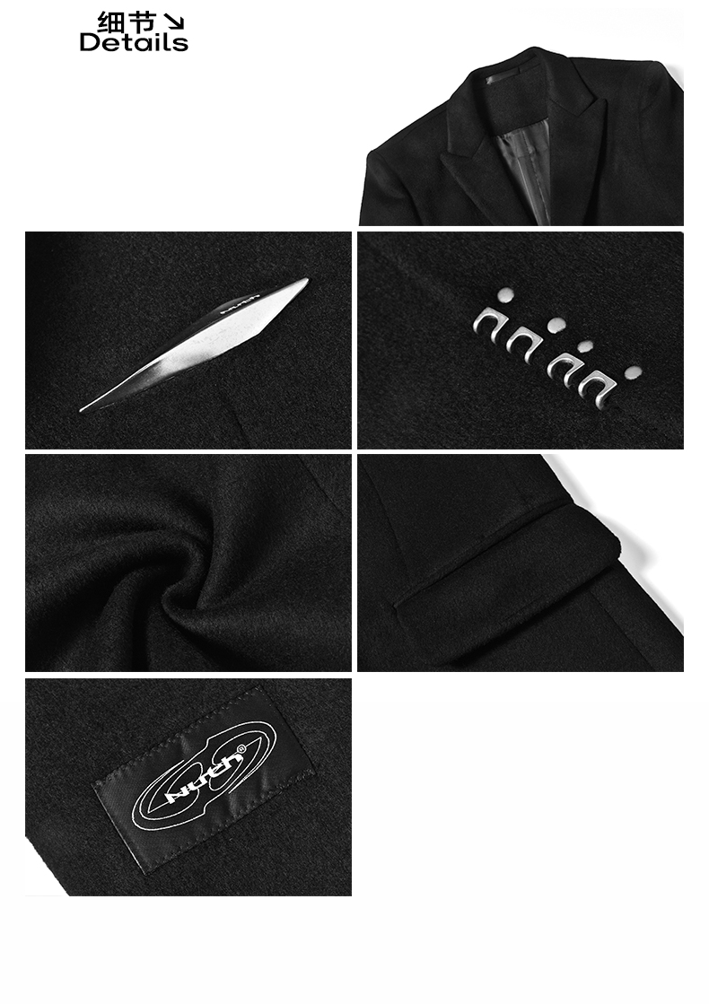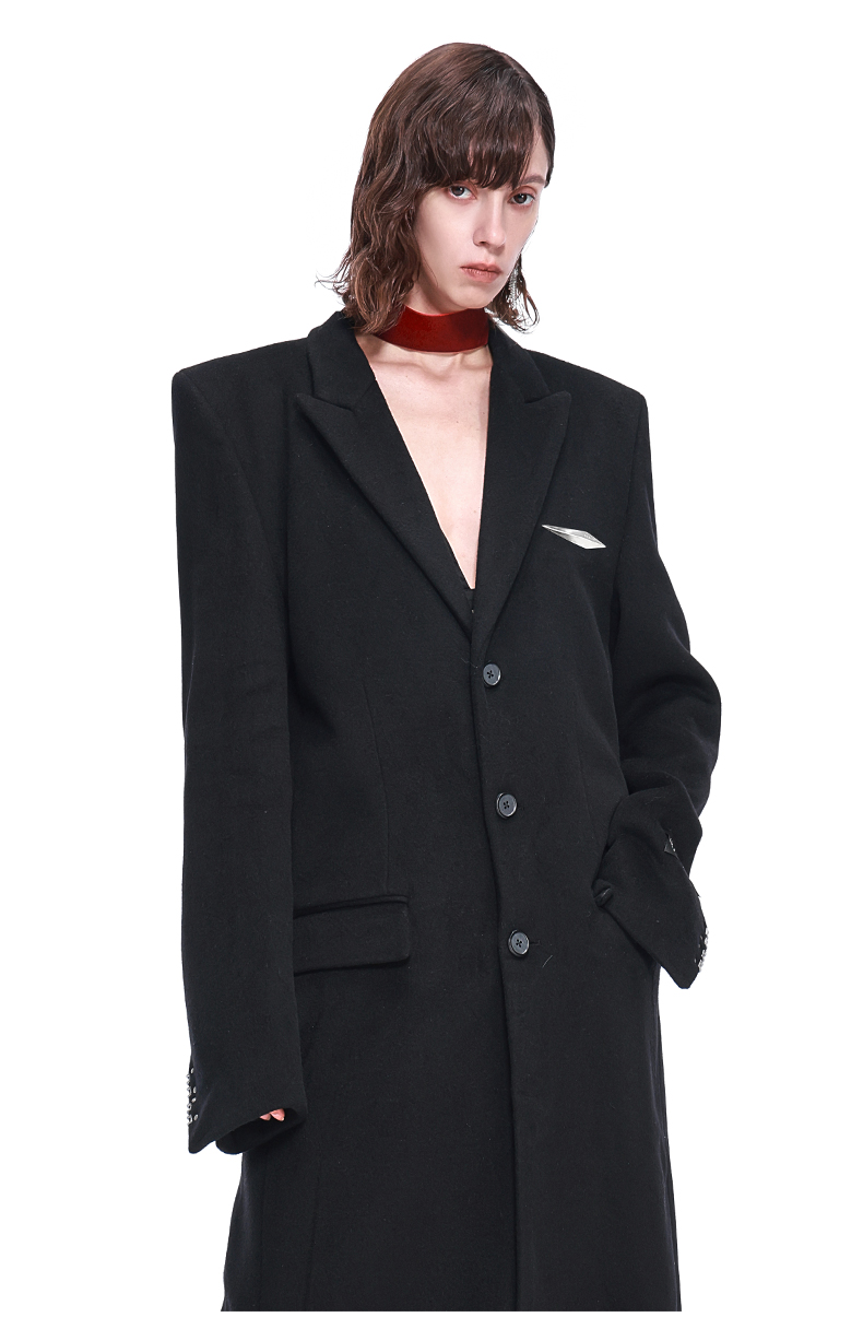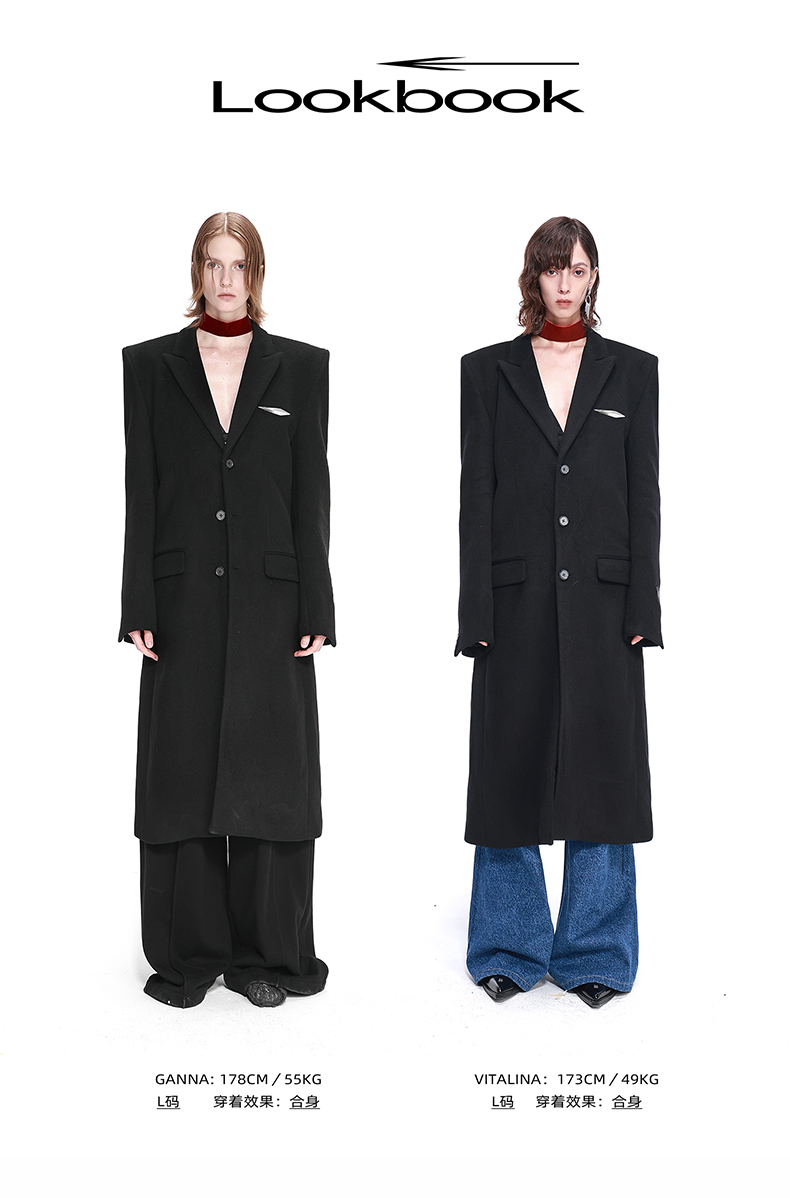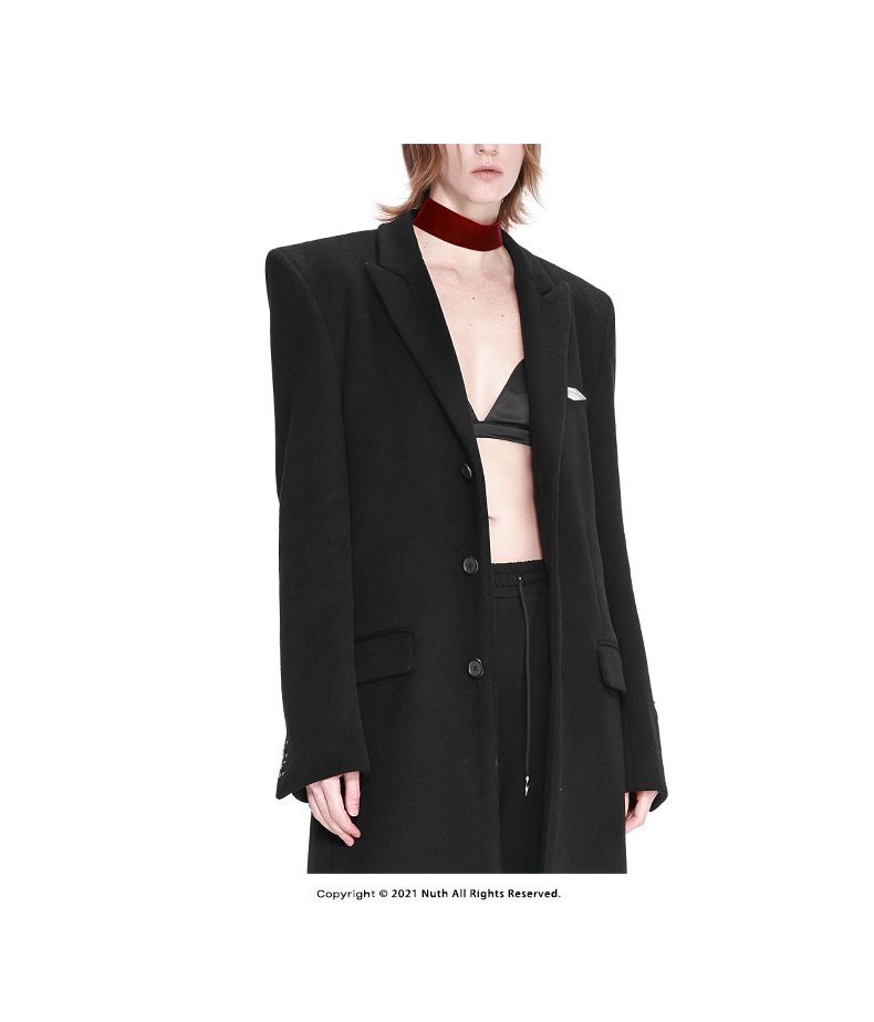 NUTH 秋冬宽肩修身毛呢中长款黑色毛呢大衣呢子羊毛外套女