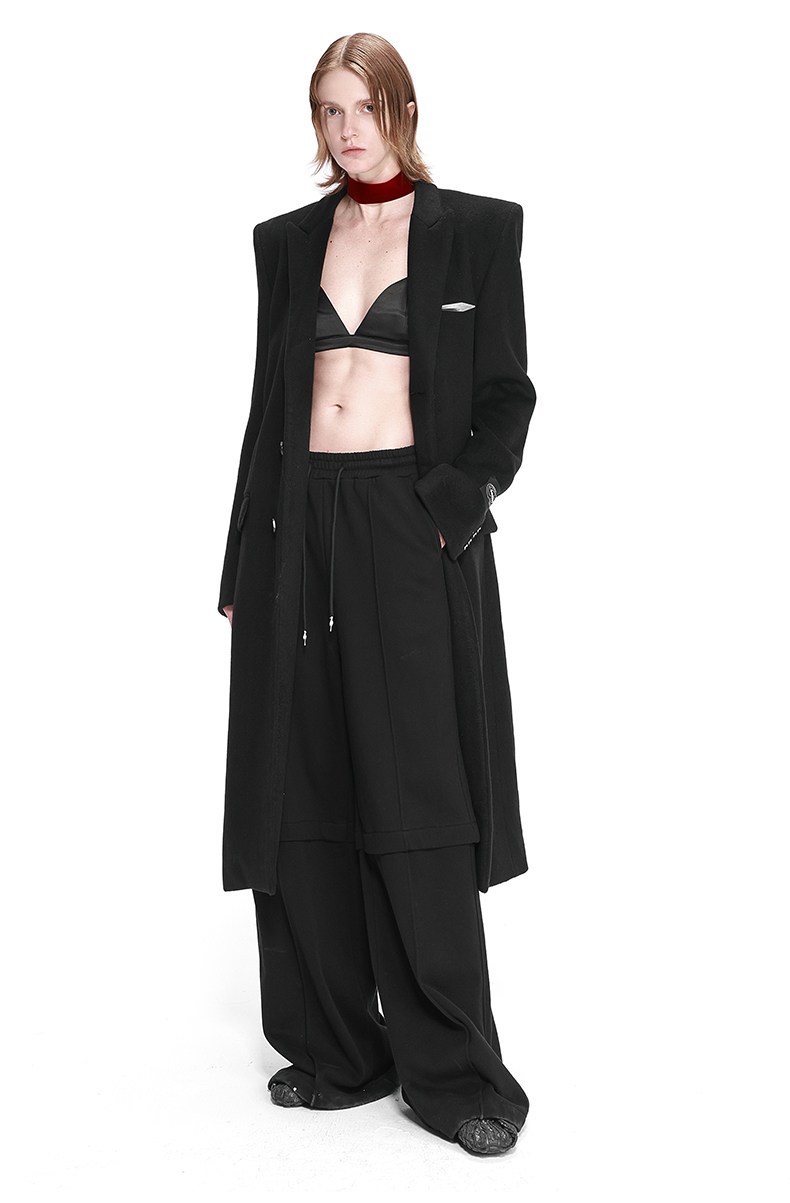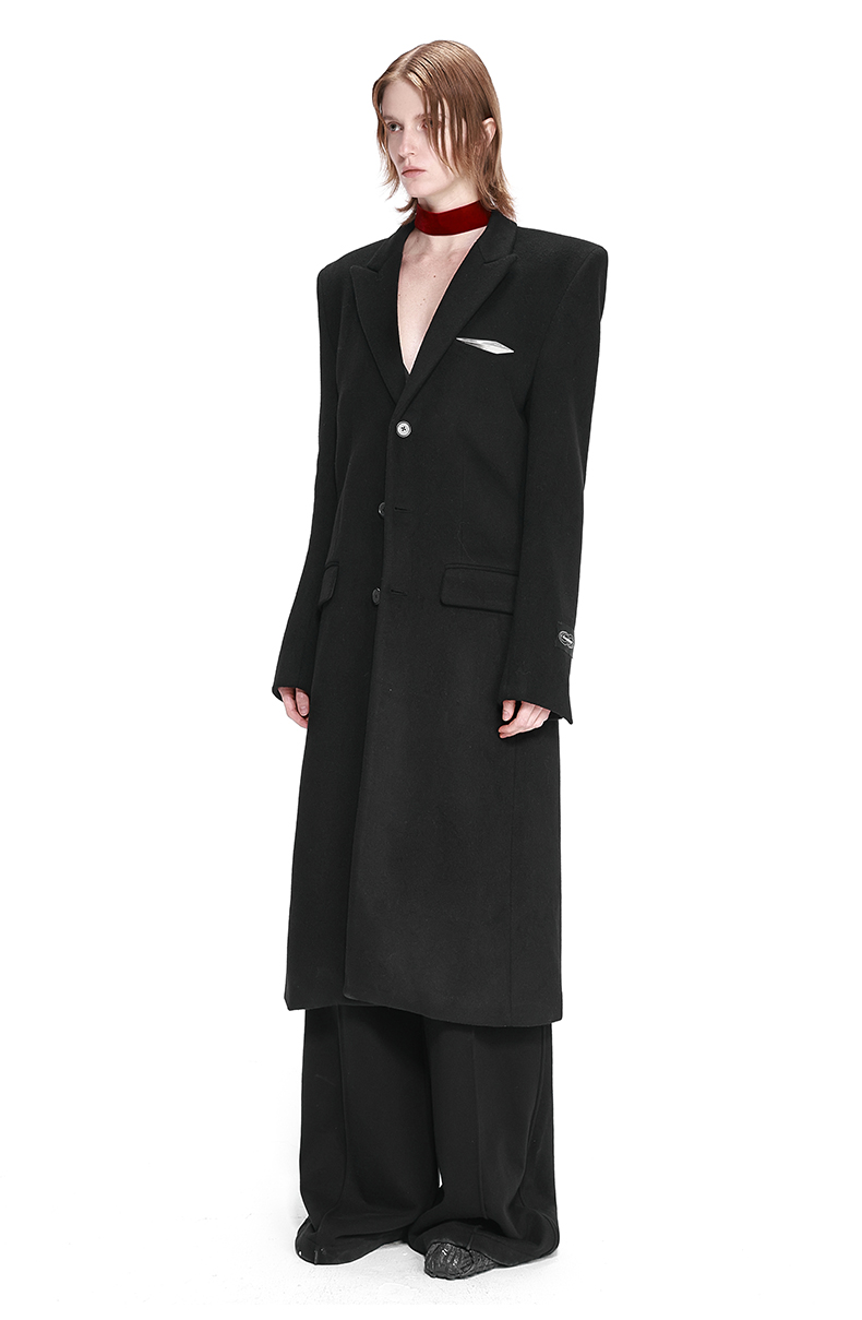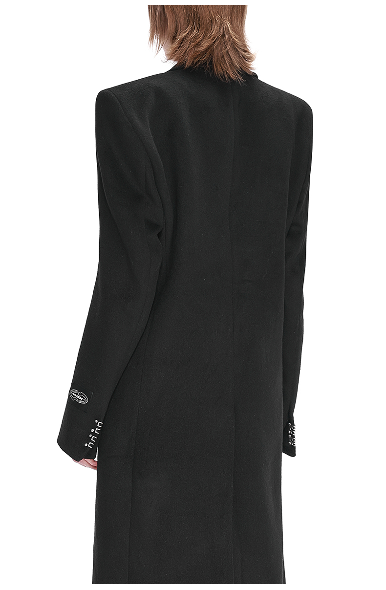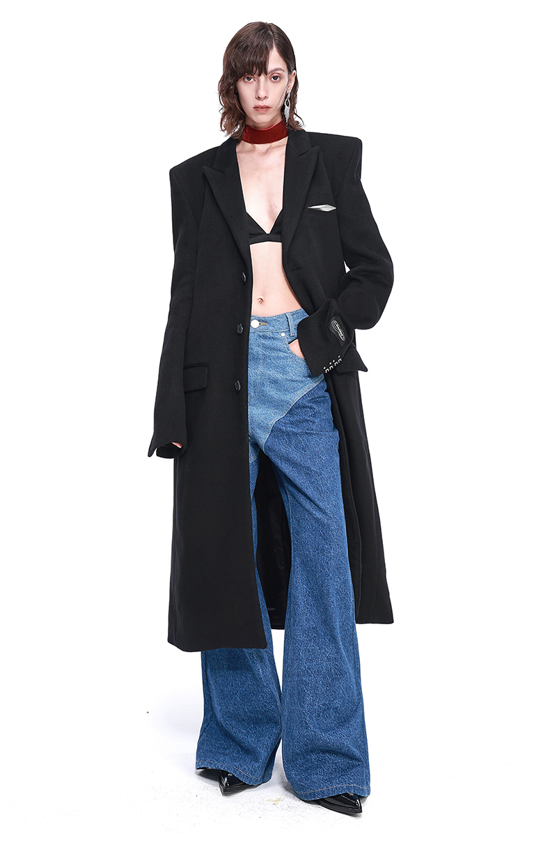 NUTH 秋冬宽肩修身毛呢中长款黑色毛呢大衣呢子羊毛外套女