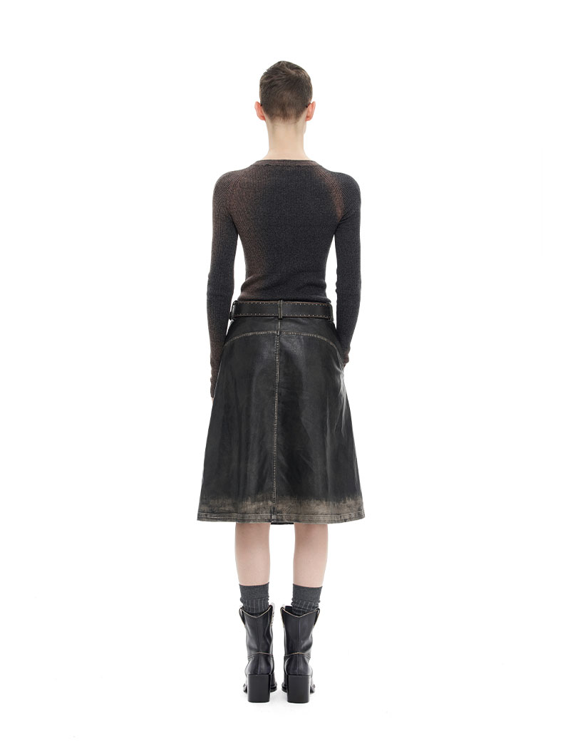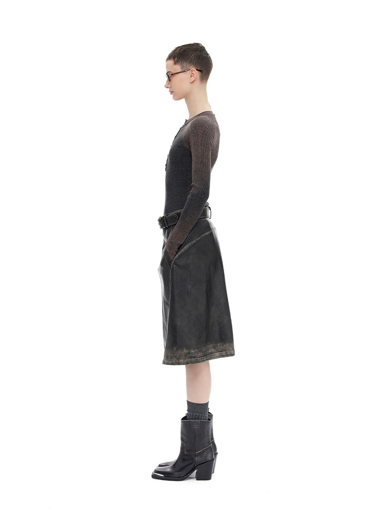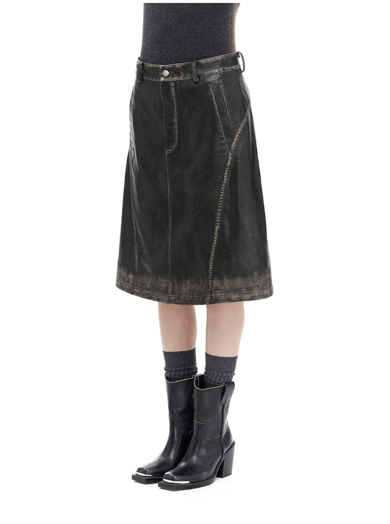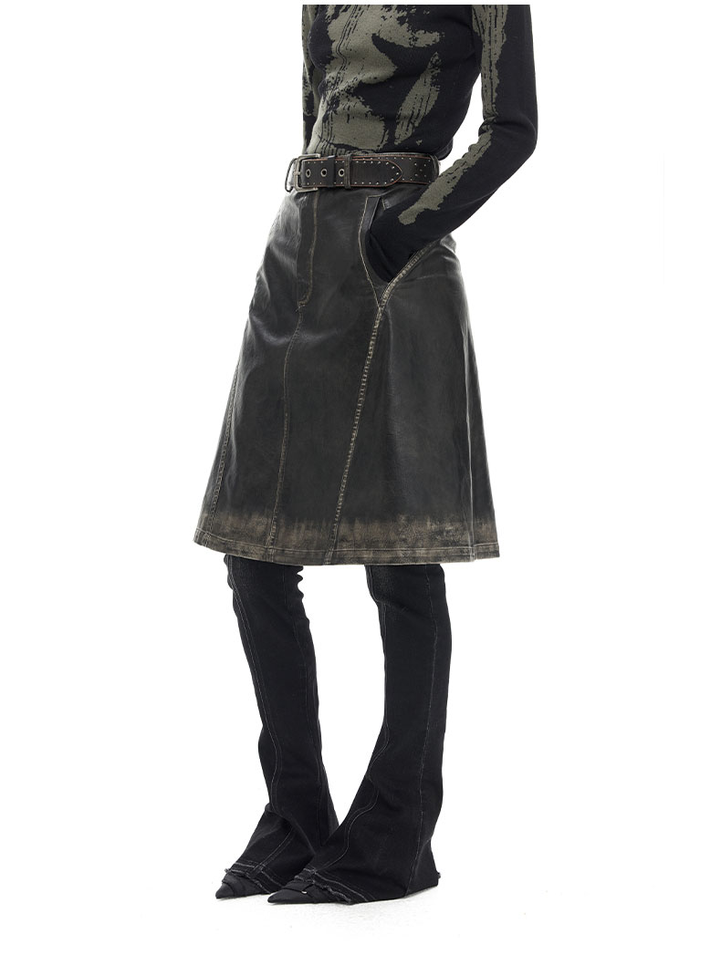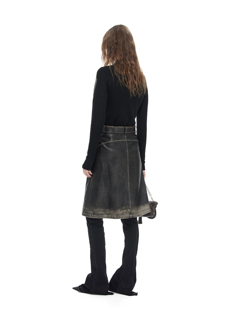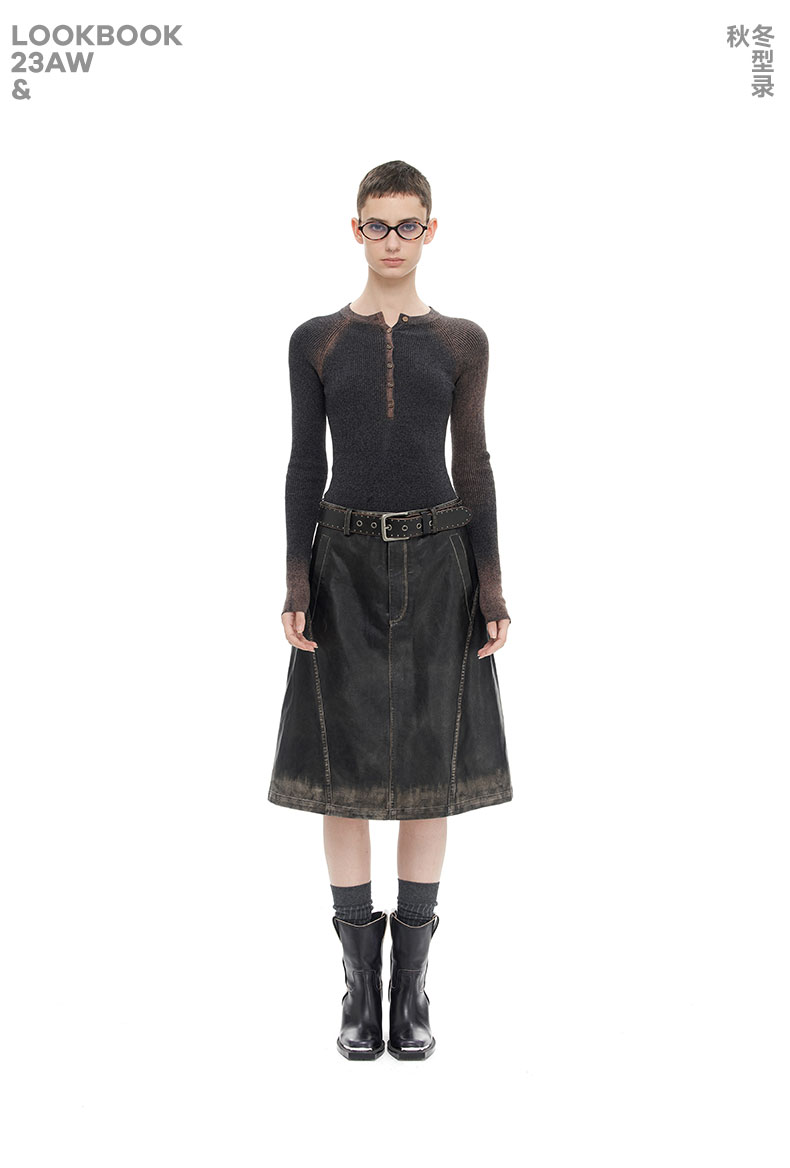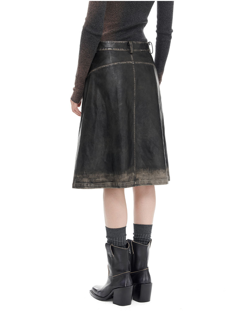 NUTH “裙摆做旧”|复古洗褪做旧结构设计感加绒皮半裙
