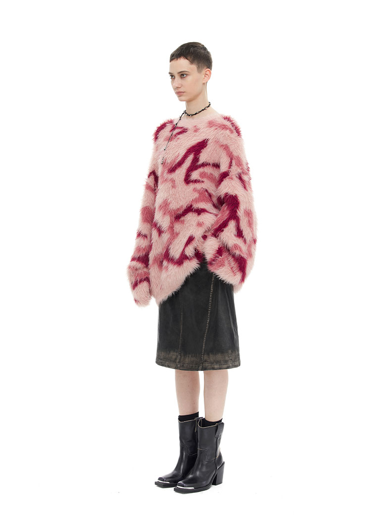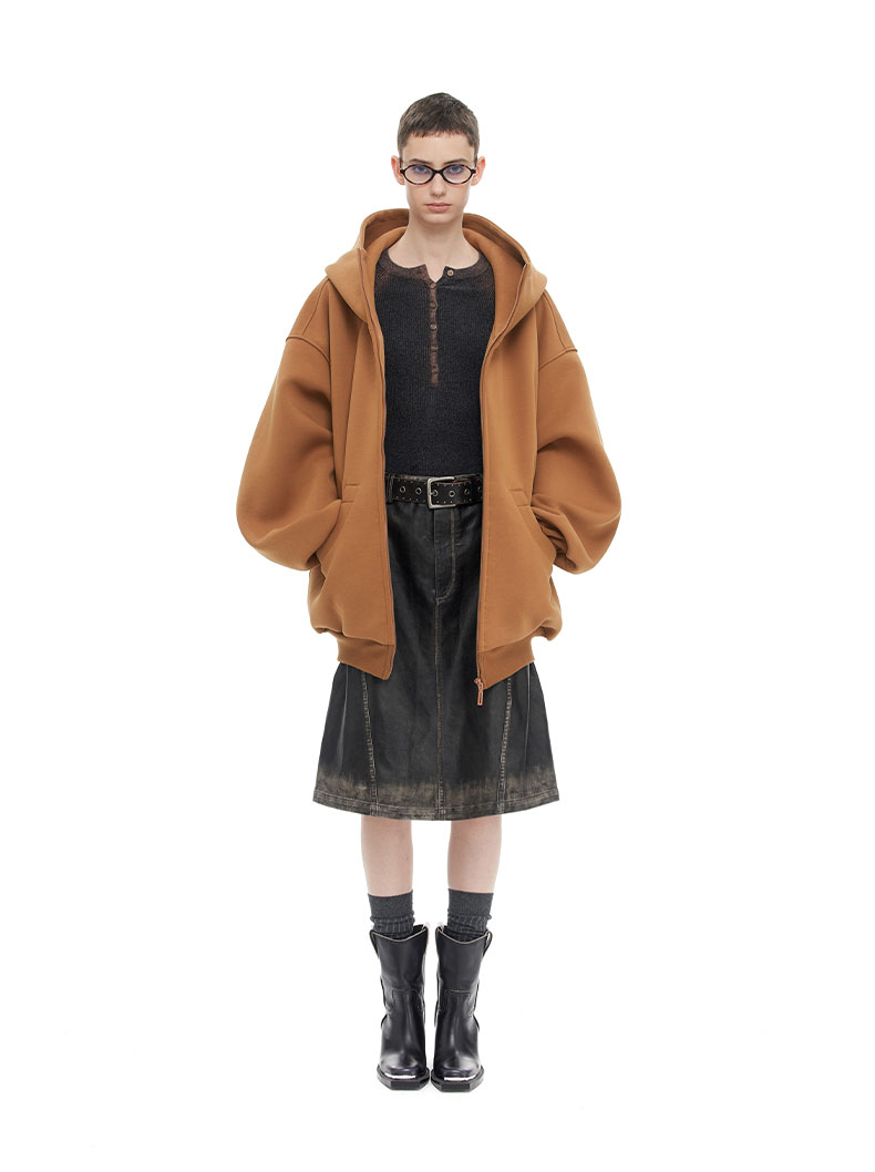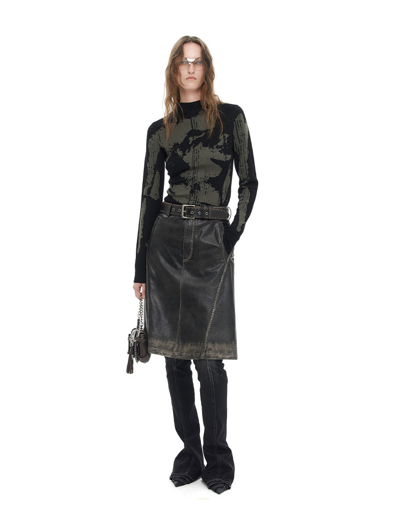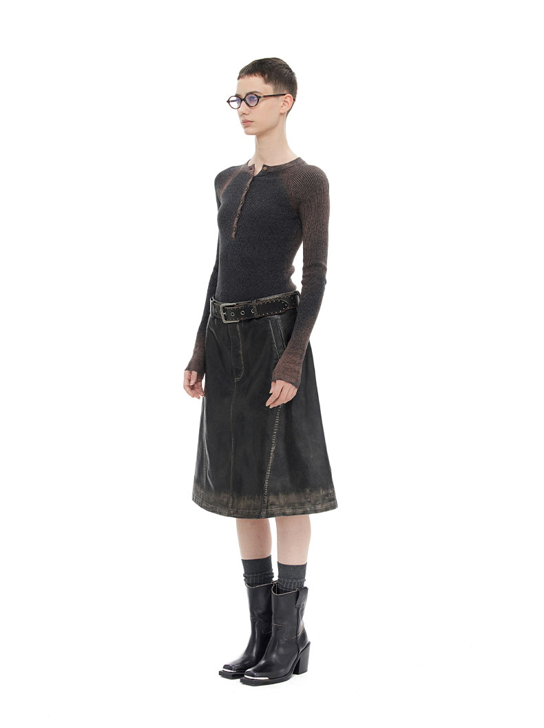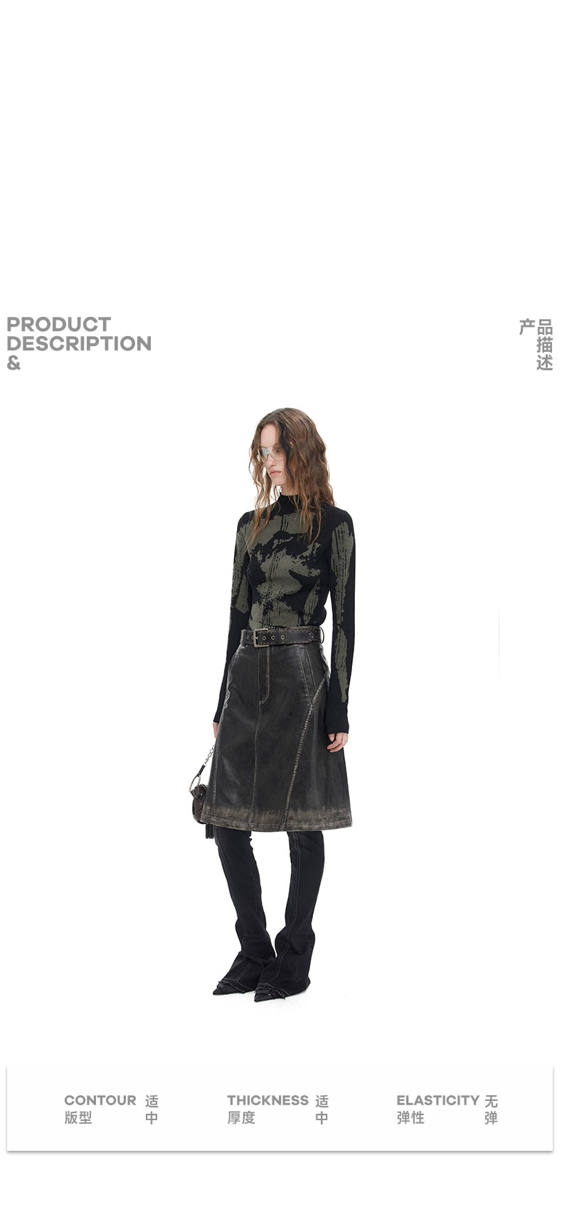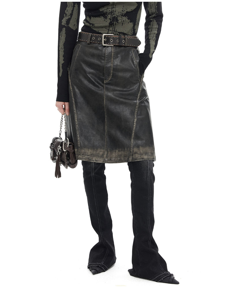 NUTH “裙摆做旧”|复古洗褪做旧结构设计感加绒皮半裙