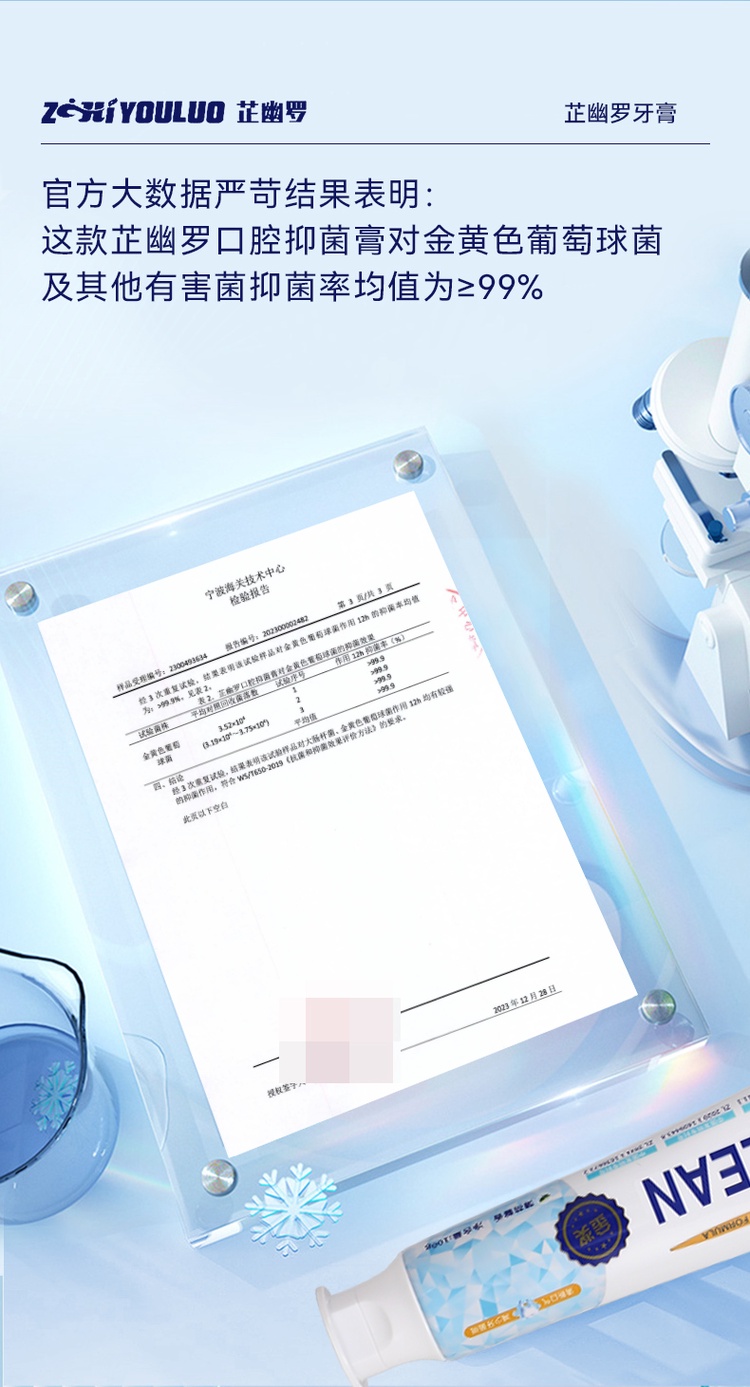 芷幽罗口腔抑菌膏对金黄色葡萄球菌