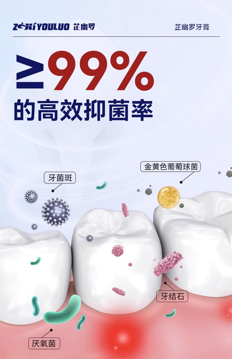 抑菌率大于99%,有助抑制口腔有害菌生长,清新口腔环境