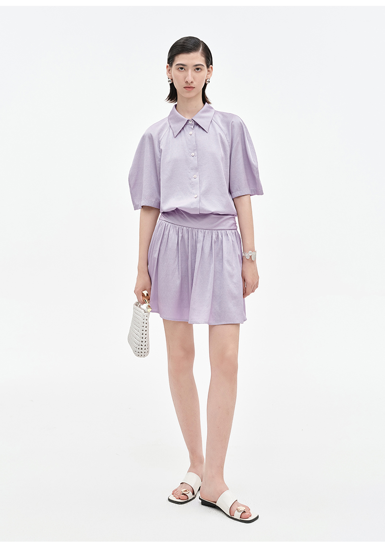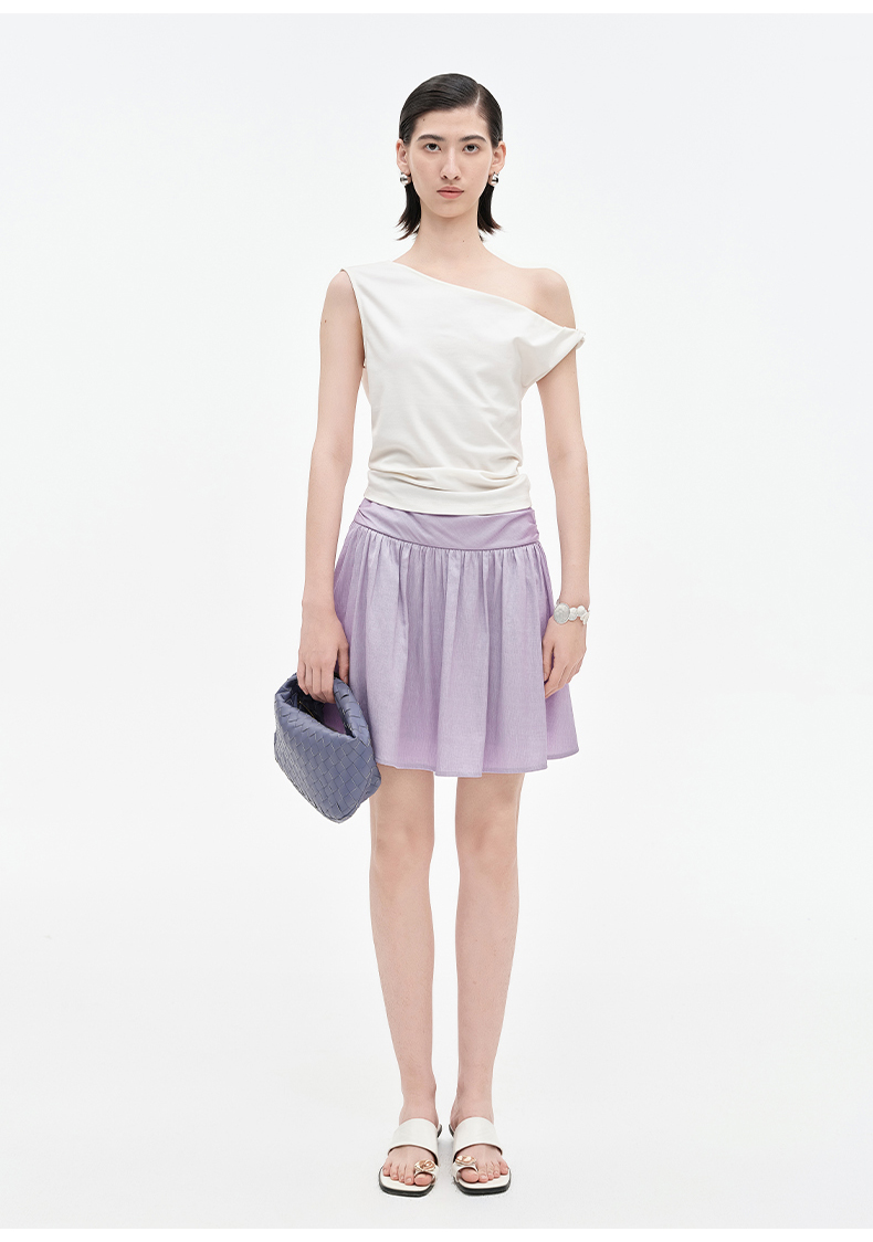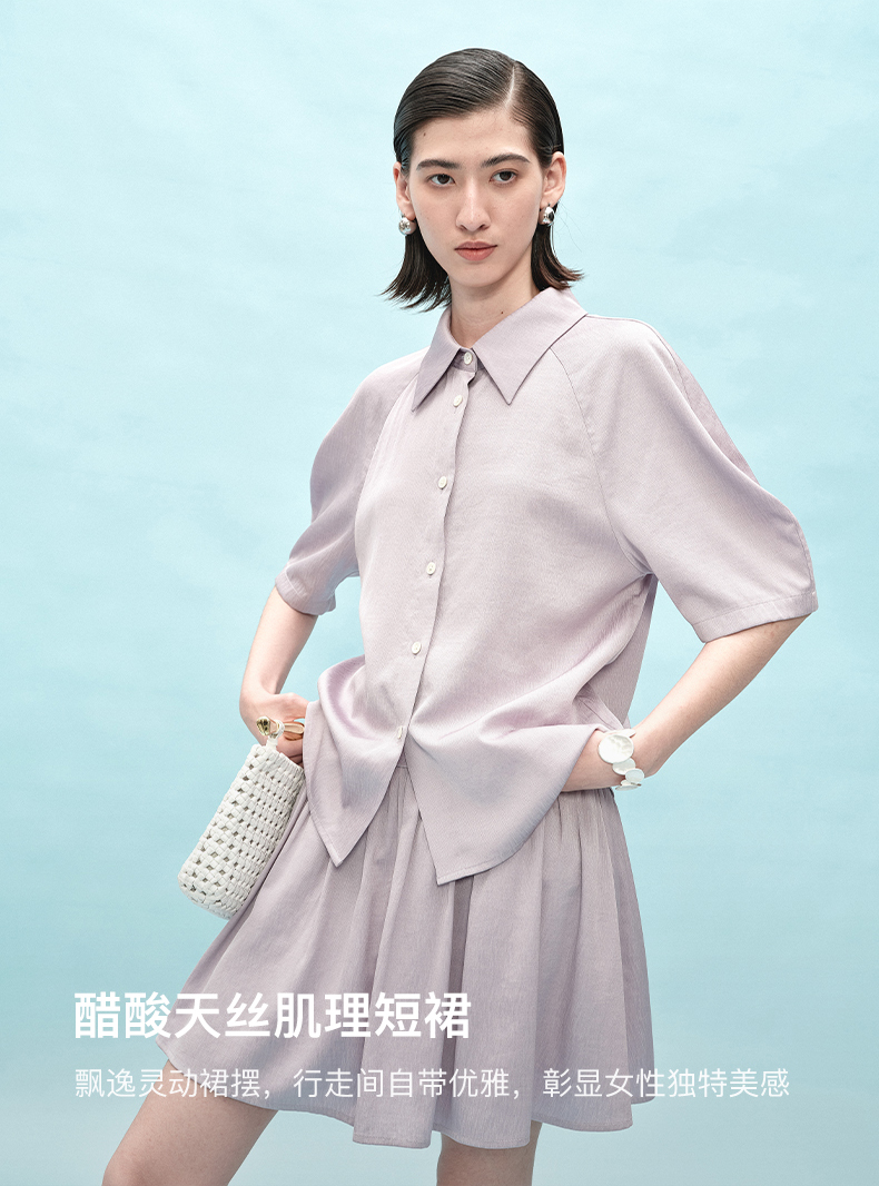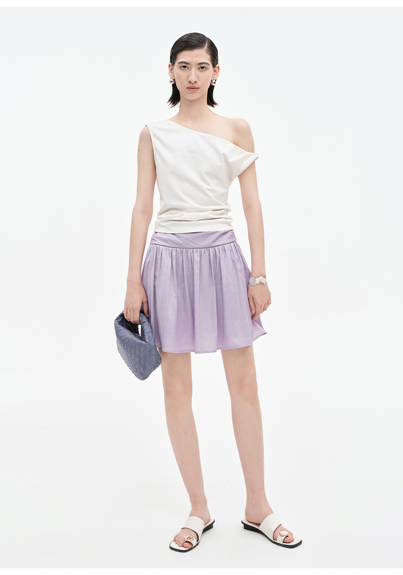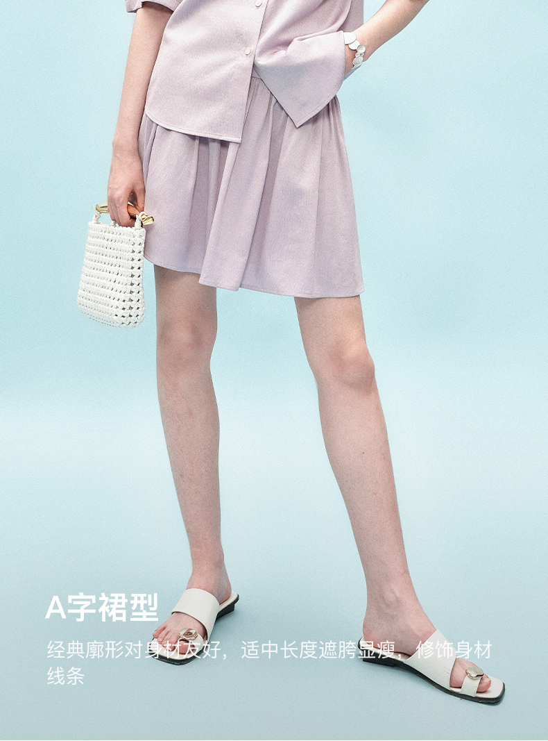 SELFWHO醋酸天丝混纺宽腰头短裙半身裙女2025夏新款爽滑褶皱半裙