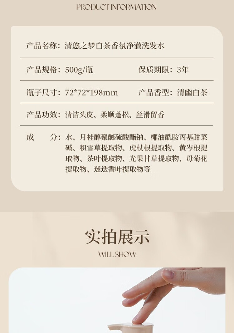 清悠之梦 白茶香氛净澈洗发水500g