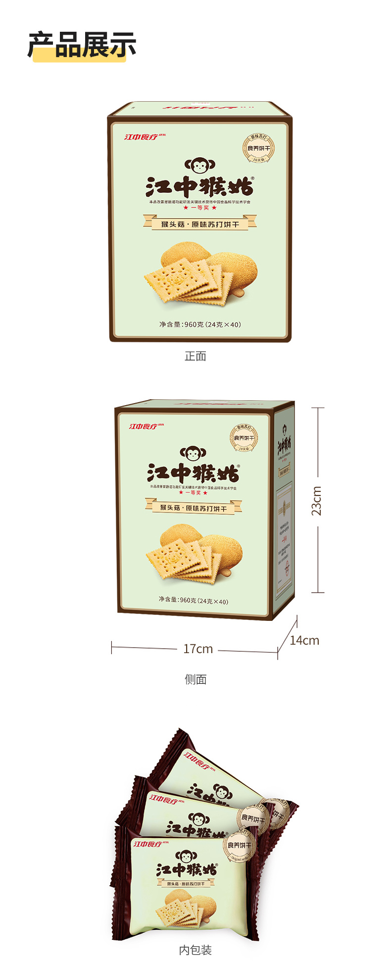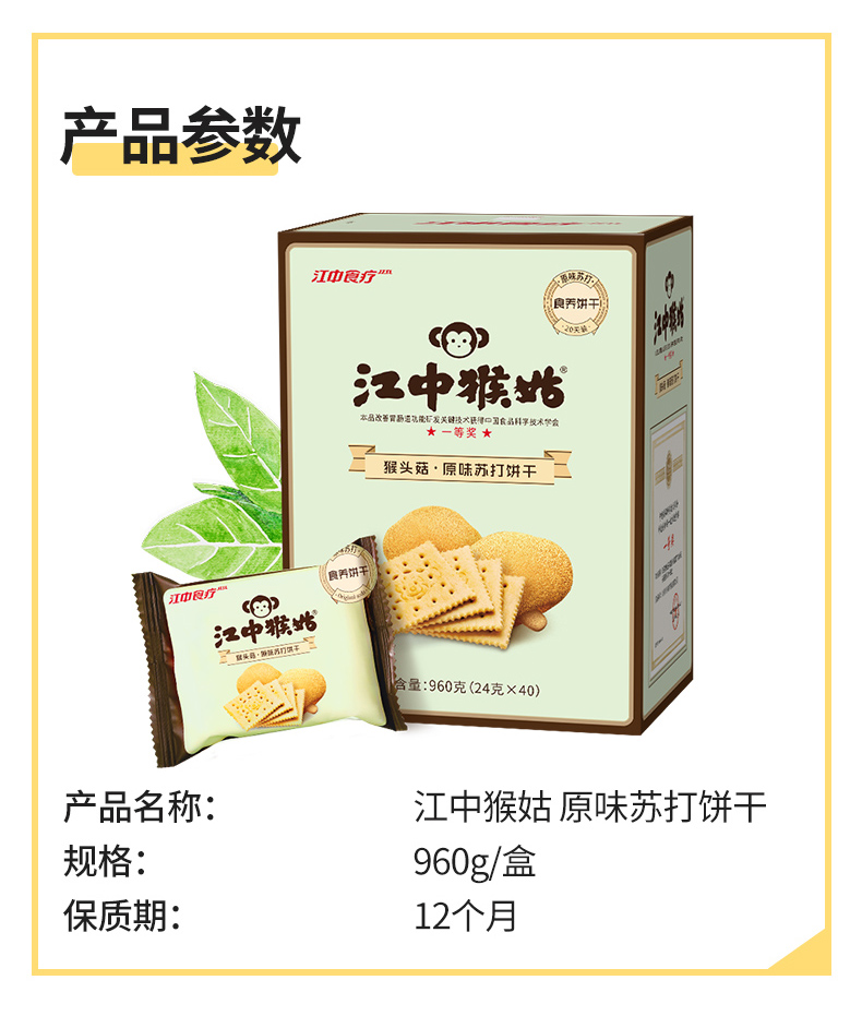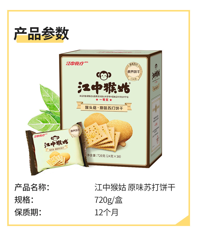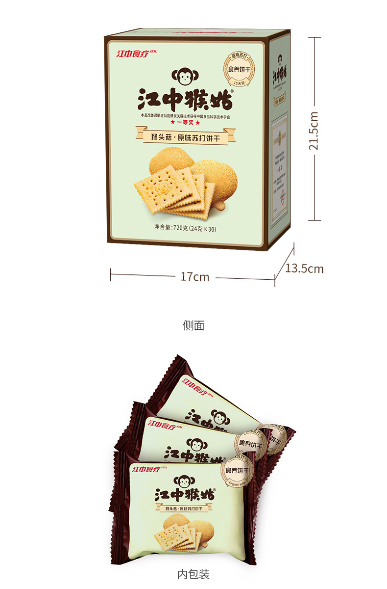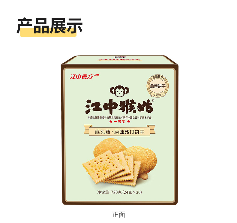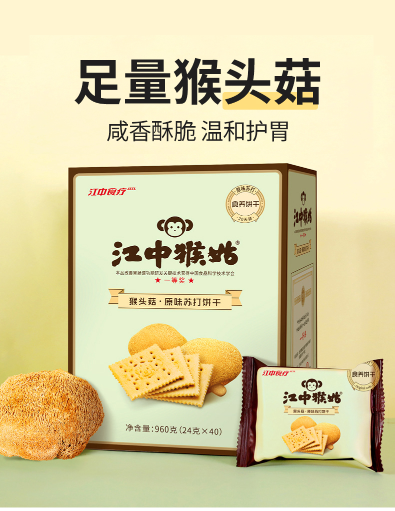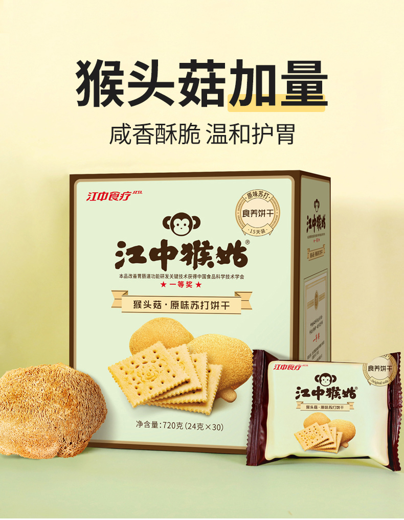 江中猴姑咸味苏打饼干15天装30包健康零食猴头菇早餐养胃720g