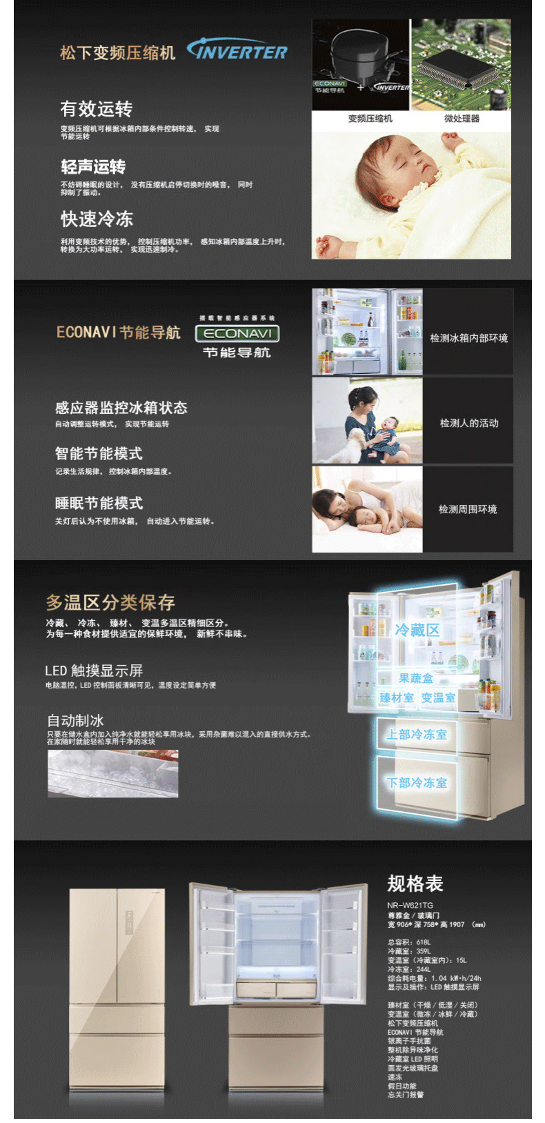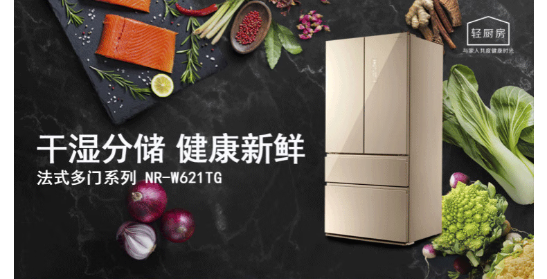 松下(Panasonic)618升法式多门冰箱 微冻保鲜 松下变频压缩 多温区分类保存NR-W621TG-XN