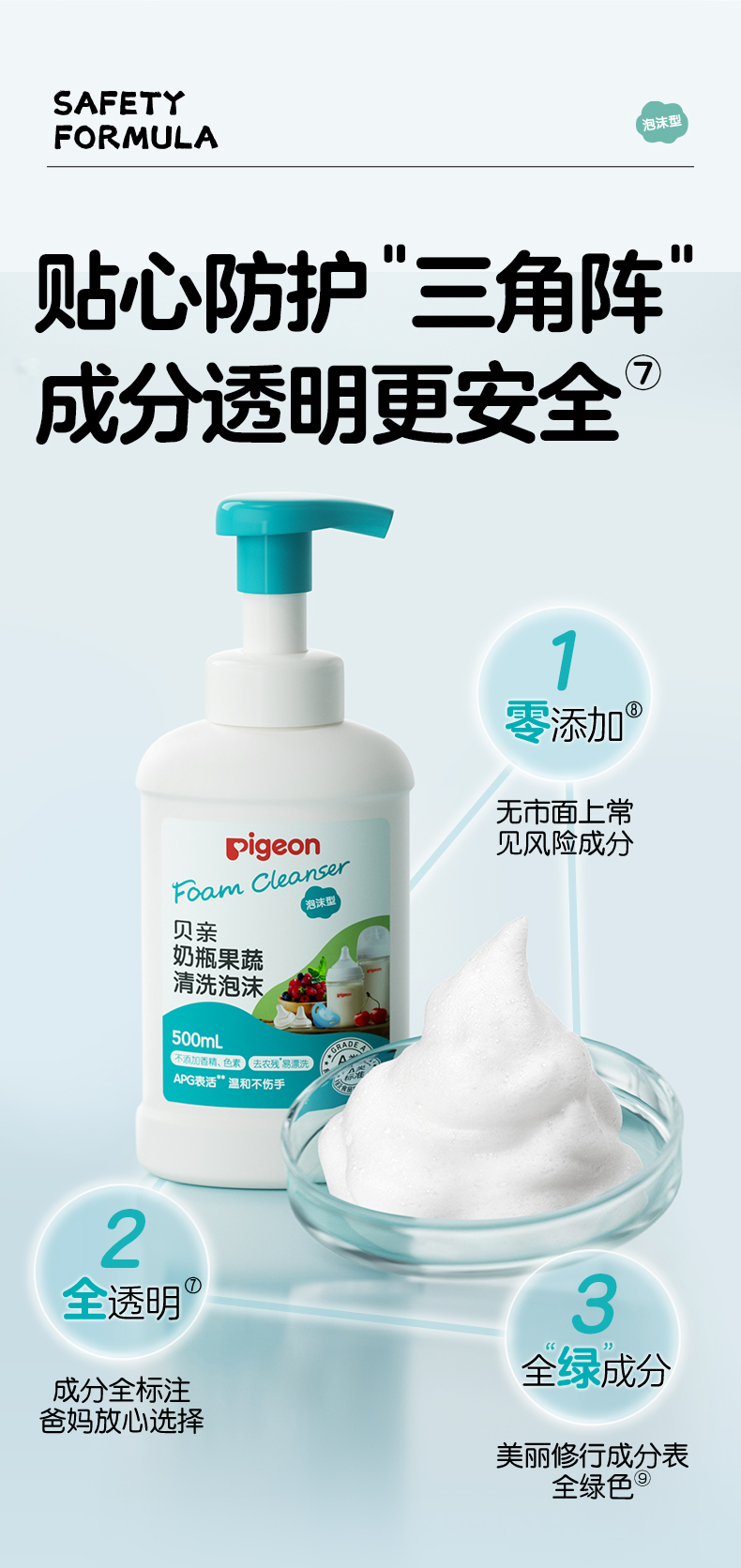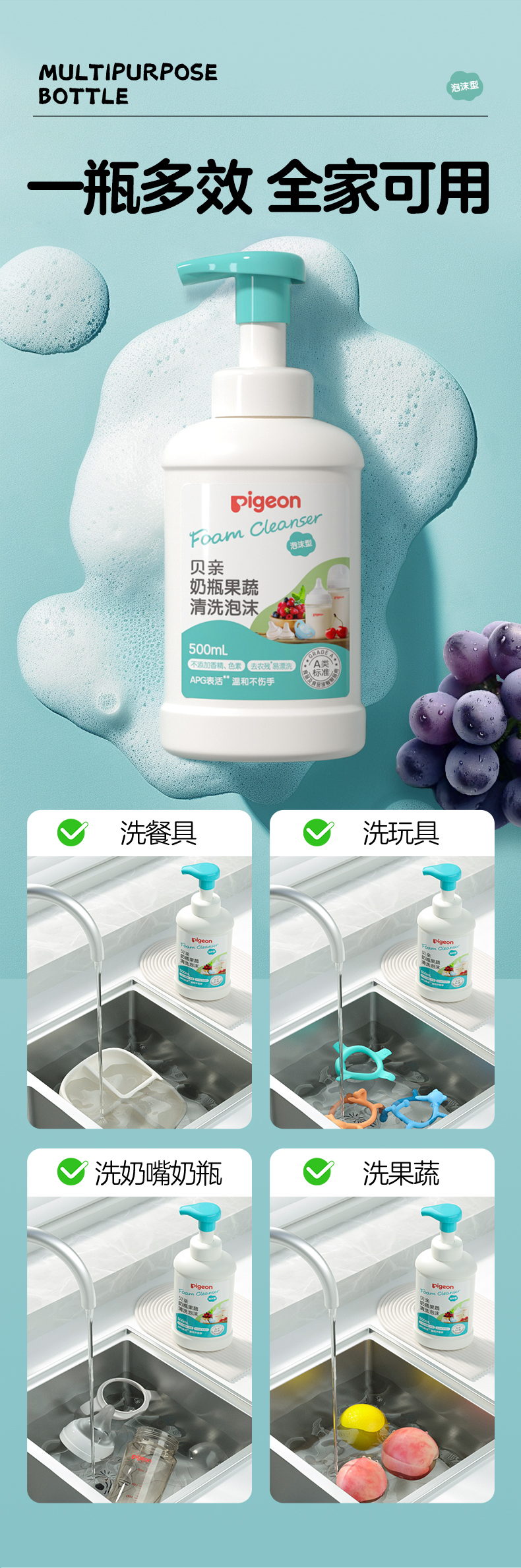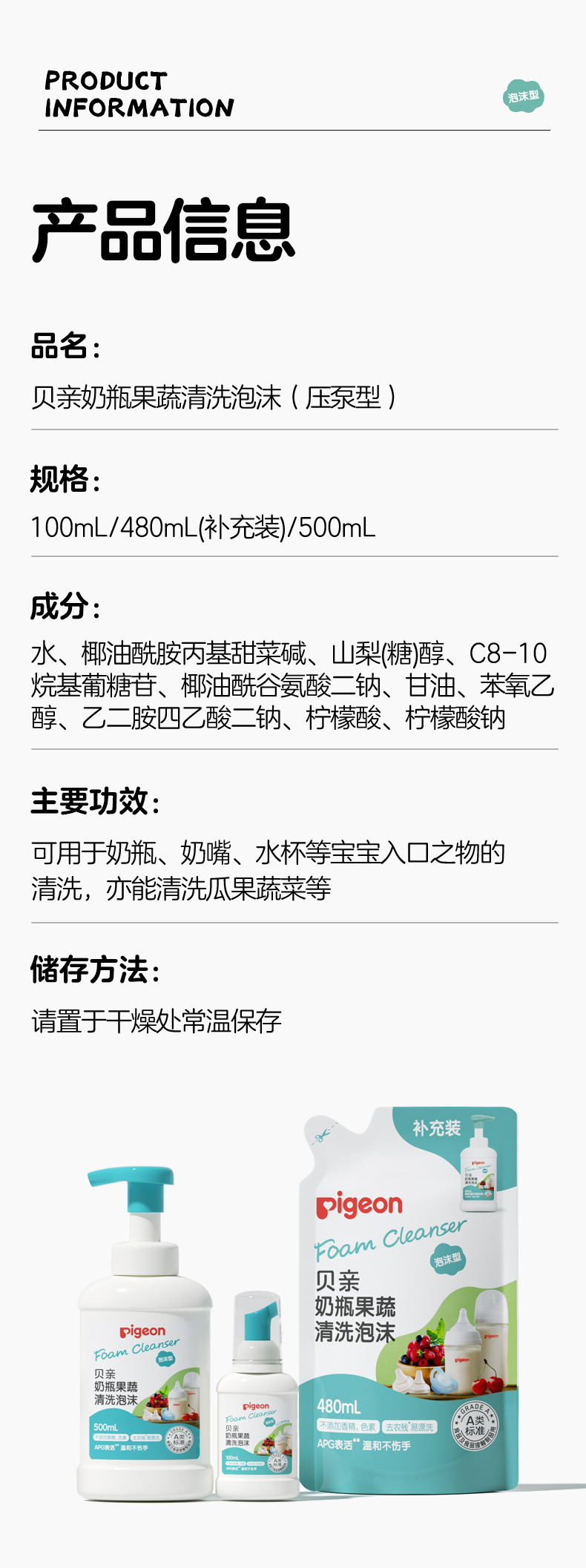 【新品】PIGEON/贝亲婴儿奶瓶果蔬清洗压泵型清洁剂(压泵型)500ml/(压泵型)补充装480ml/(压泵型)100ml