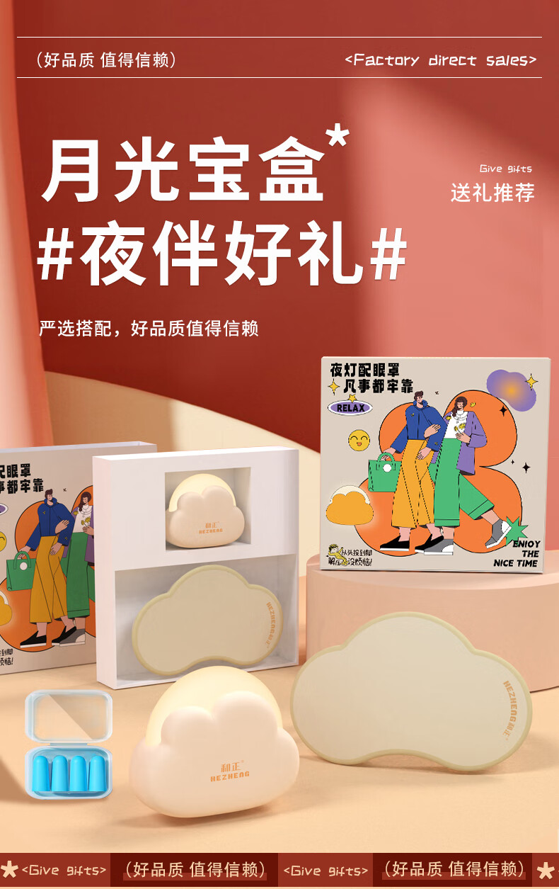 和正 月光宝盒 夜伴好礼遮光睡眠眼罩迷你小夜灯 HZ-MOON-1