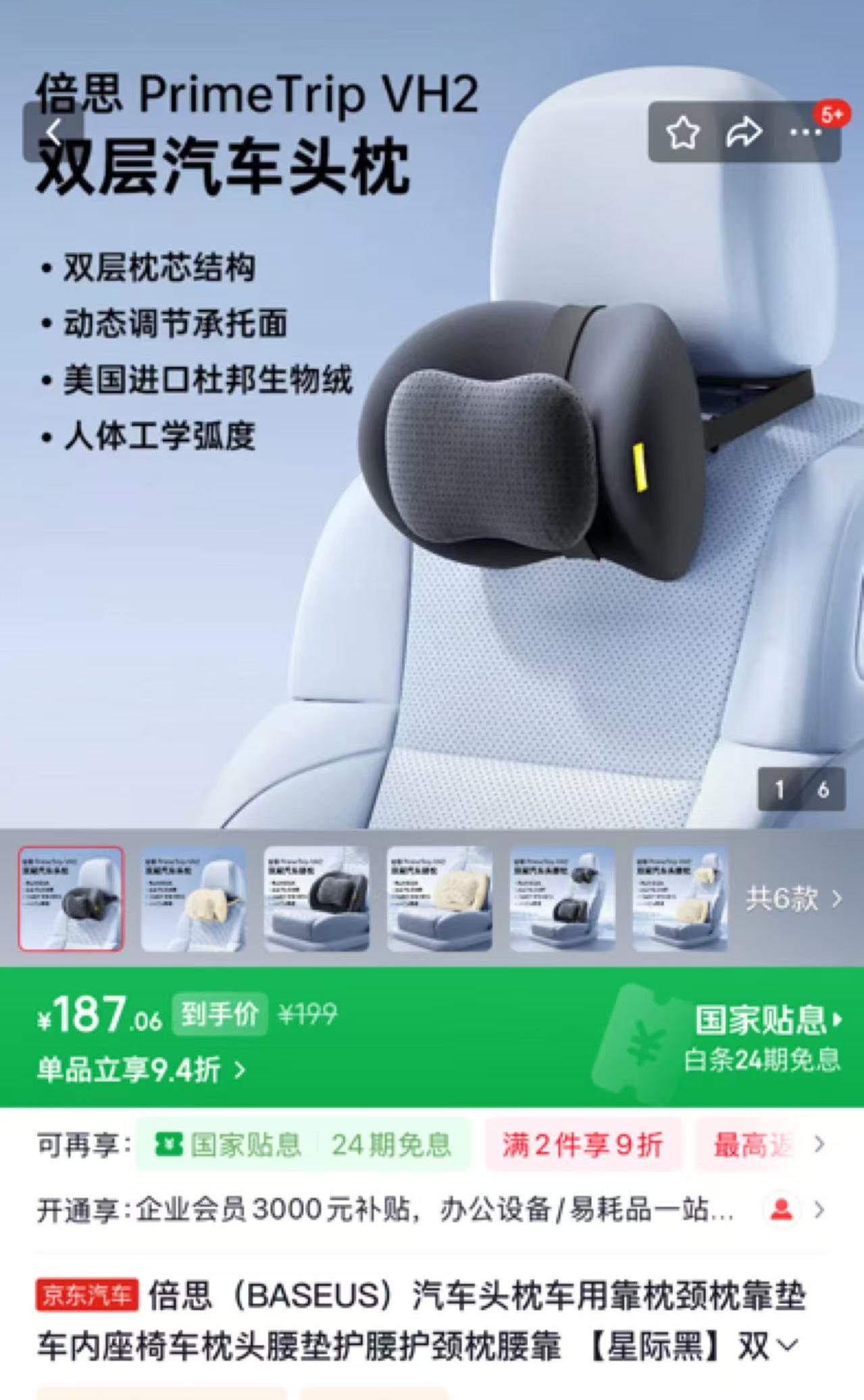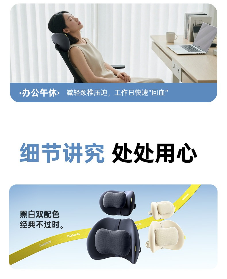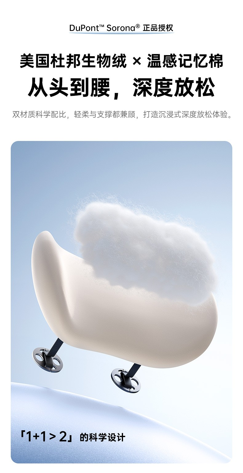 高端系列 倍思 PrimeTrip VH2 双层汽车头枕 美国杜邦生物绒 x 温感记忆棉