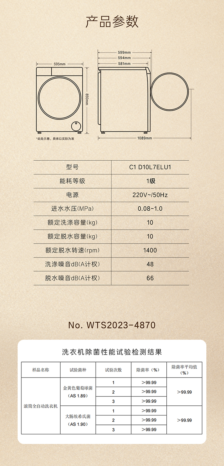 【限天津区域】卡萨帝/洗衣机/C1 D10L7ELU1