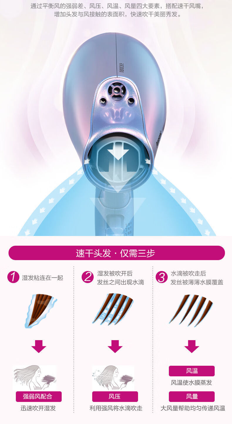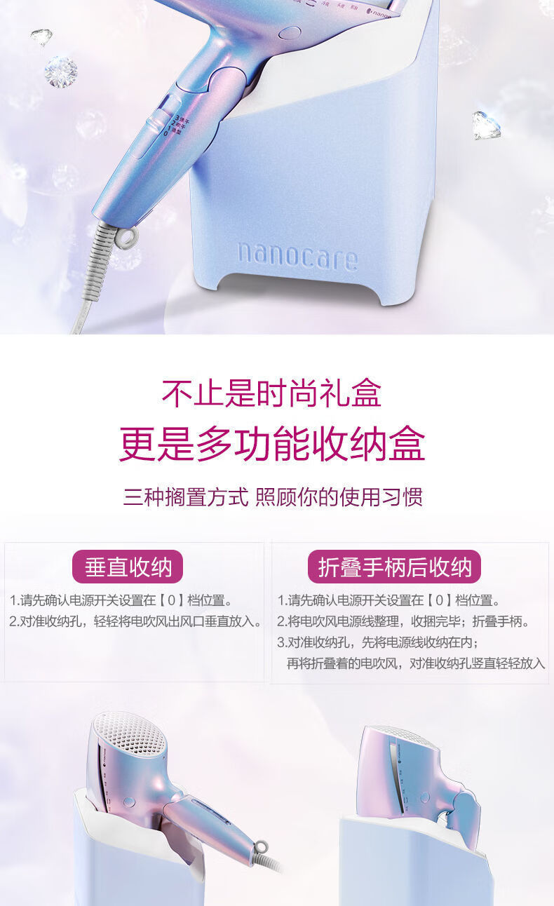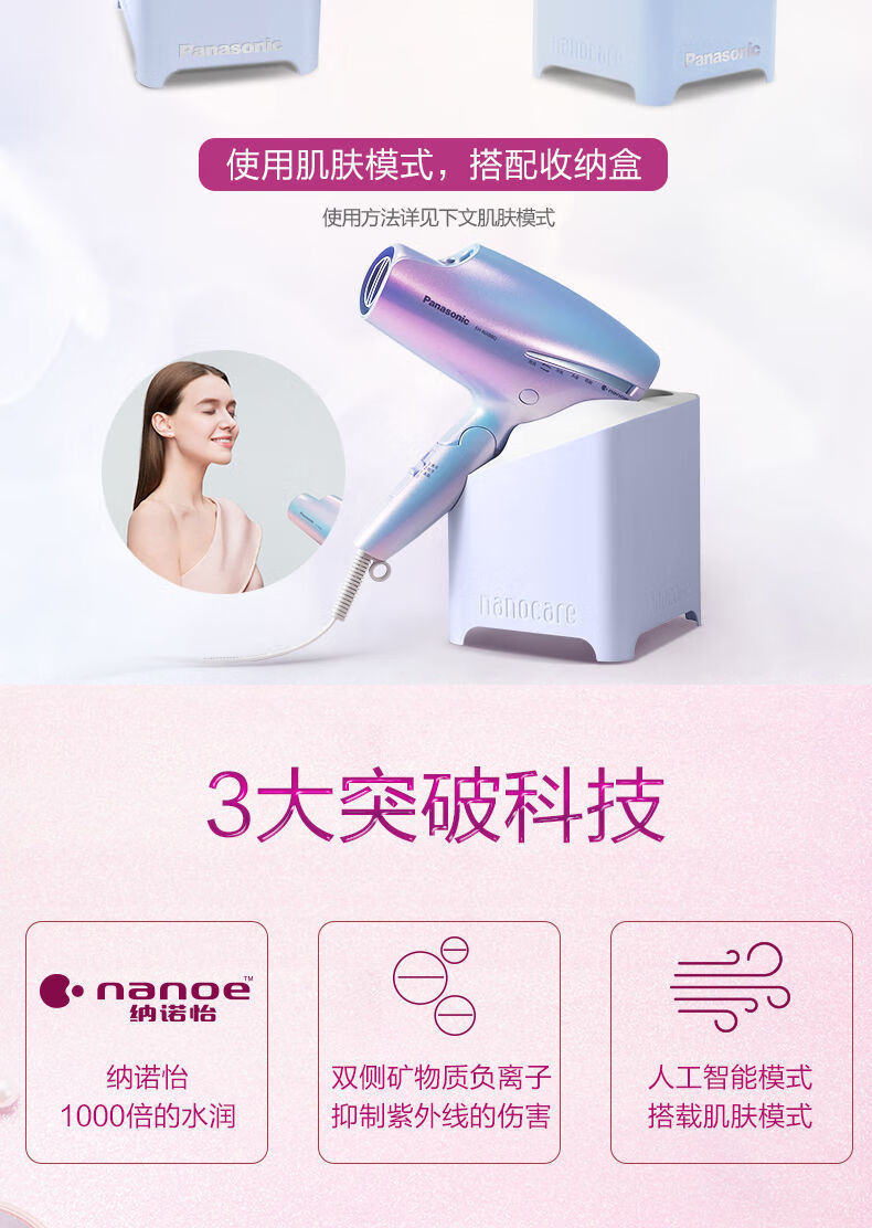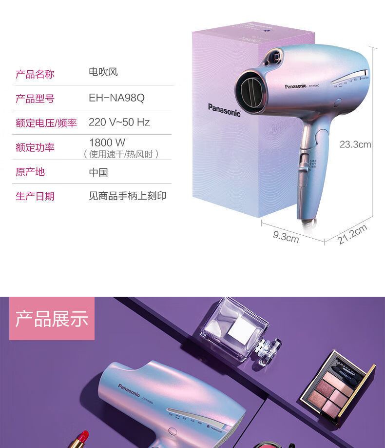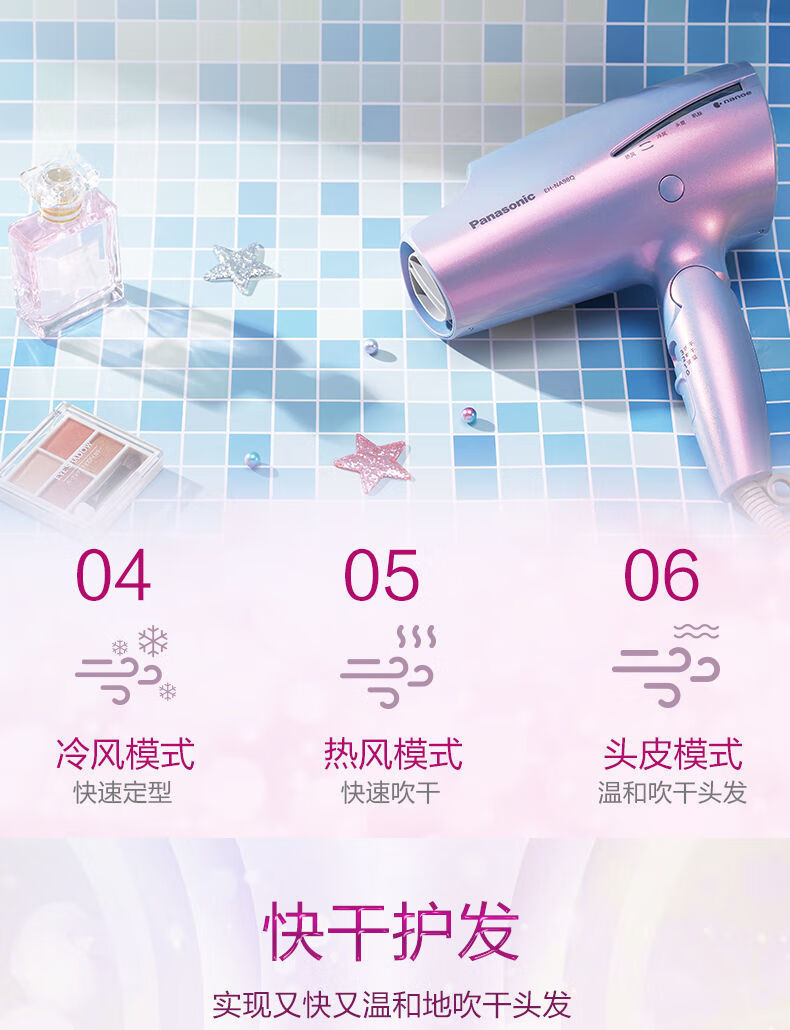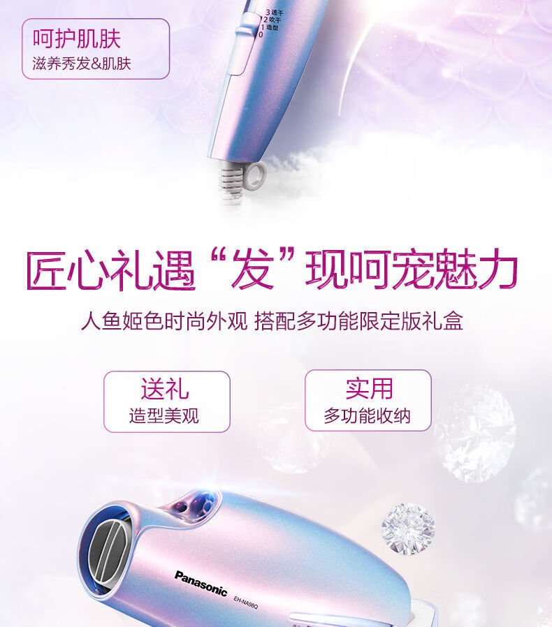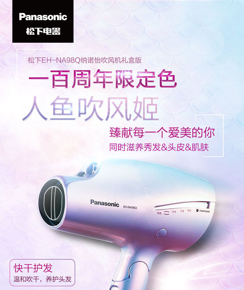 松下(Panasonic)人鱼姬电吹风机NA98Q铂金负离子纳诺怡大功率护发电吹风筒家用学生宿舍情人节礼物送女友 EH-NA98QA405纳诺怡