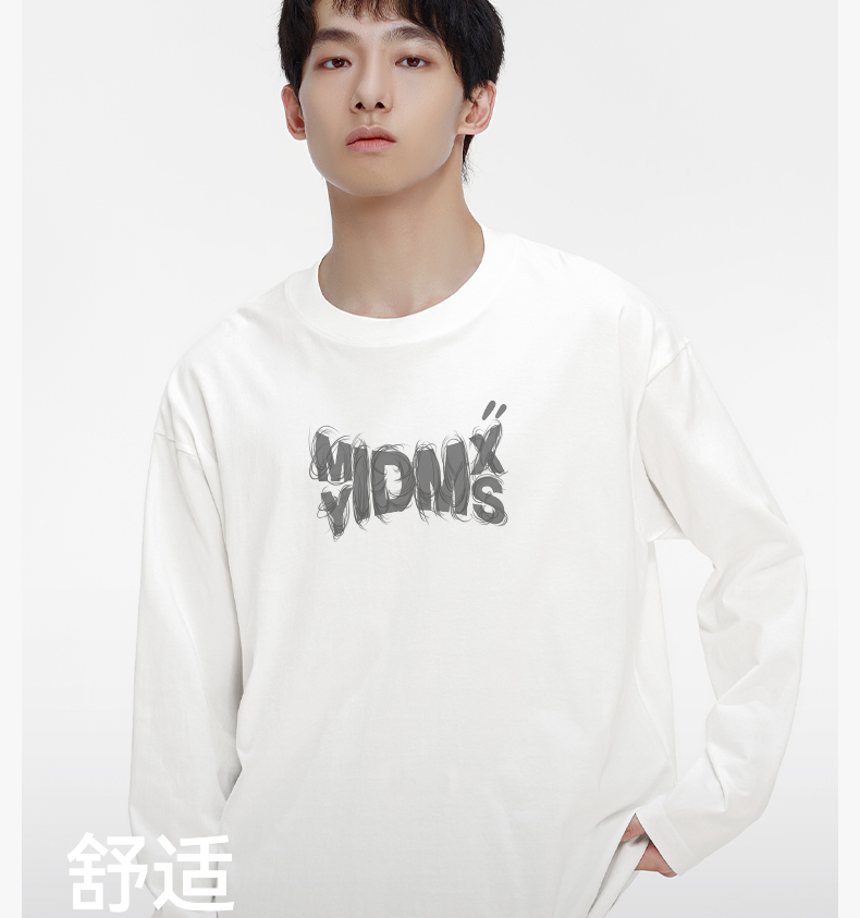 「棉的美学」圆领纯棉长袖T恤女2024秋季新款ins风印花简约打底衫