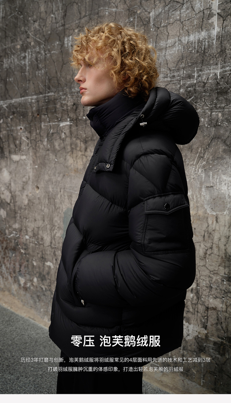 【宋轶同款】[男短款]三彩2024冬季新款极寒保暖连帽面包服白鹅绒外套羽绒服男版S
