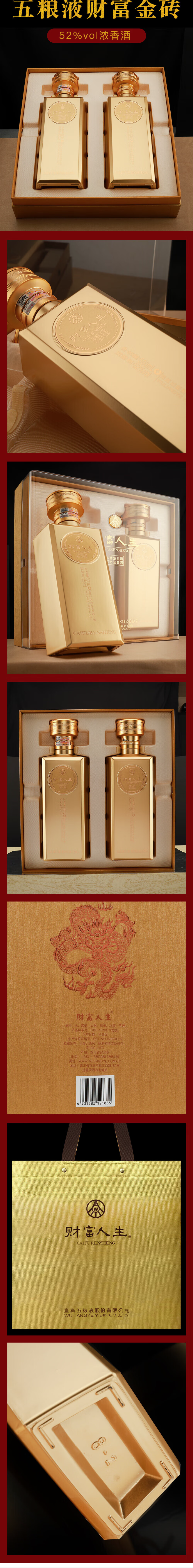 【礼赠好礼】五粮液 财富人生金砖 浓香型白酒 52度 500ml* 2瓶礼盒装 拍3发原箱